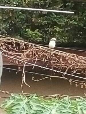after the shower rain stopped, the bird flew just on top the clothes line where I dry my laundry.