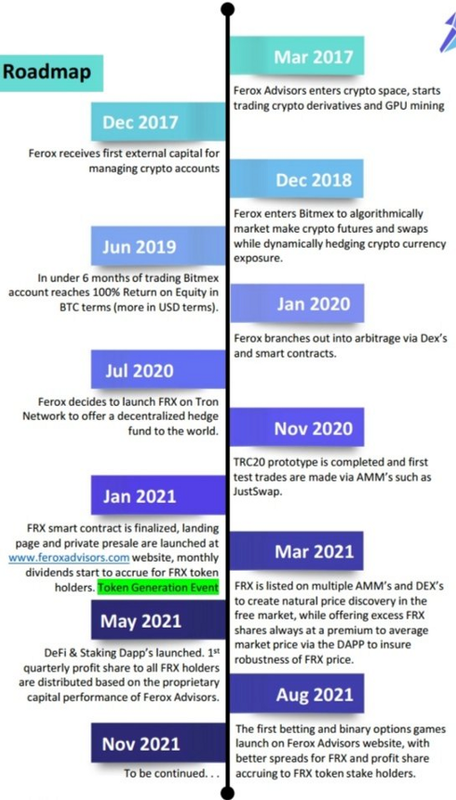 The Ferox Advisor platform is run by means of a liquidity pool. This is a token that has been locked into a smart contract. The platform's native utility token is FRX. The demand for FRX Coins continues to increase all the time with the further development of Ferox Advisors Ltd.