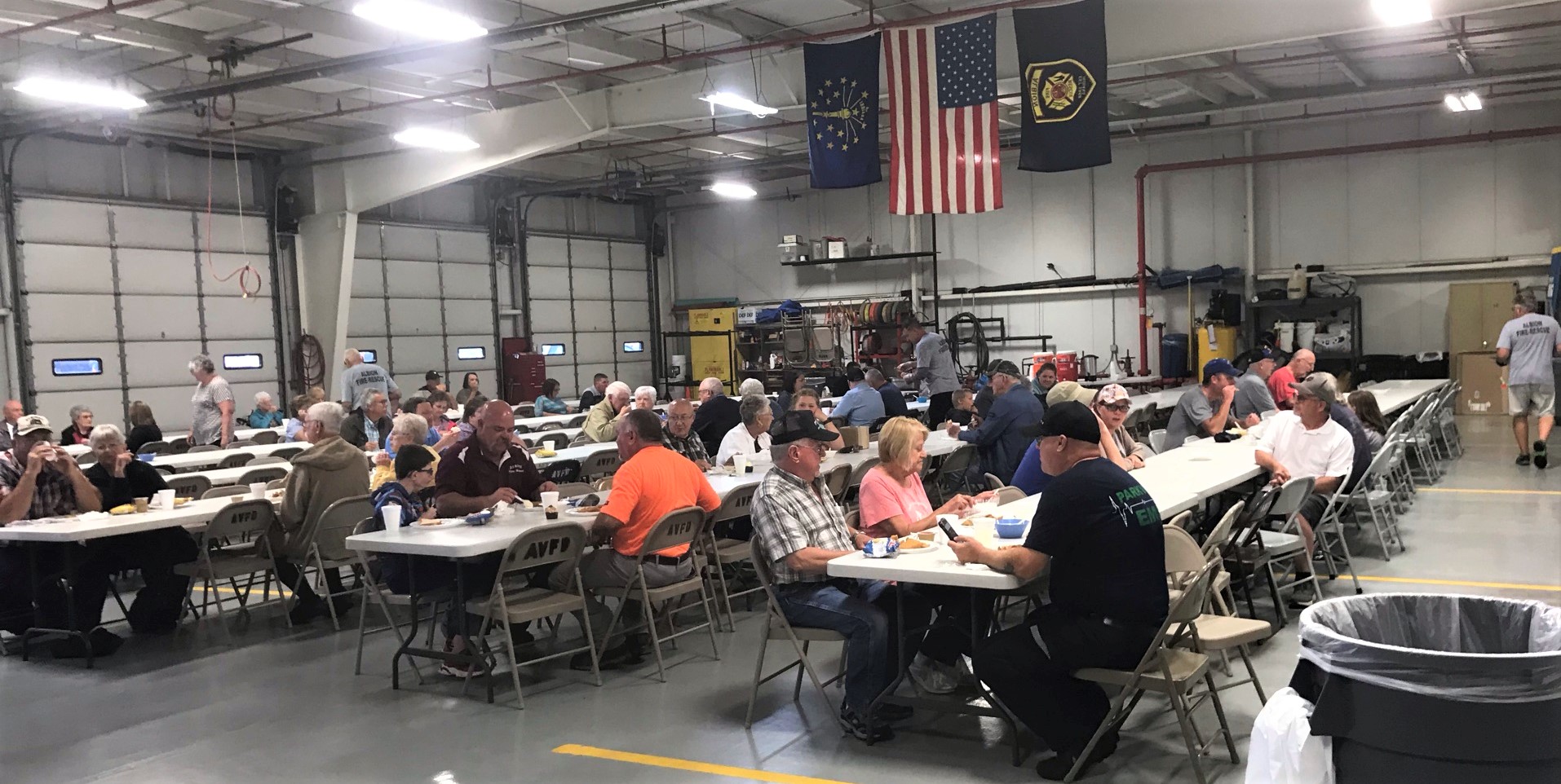 Speaking of eating, on the same Wednesday the rides started the Albion Fire Department served over six hundred fish and tenderloin meals under a pouring rain and occasional thunder ... well, under a roof. Good thing that roof was there. The Chain O' Lakes Festival is notorious for funny weather and/or unusual things happening. During the fish fry one year, for instance, there was an earthquake, but many of the diners just thought it was the sound of their waistbands expanding. This year everyone was treated to the performance art of one Mark R. Hunter, who tried to sit in a chair when the chair was somewhere else. And yes, I'm still sore.