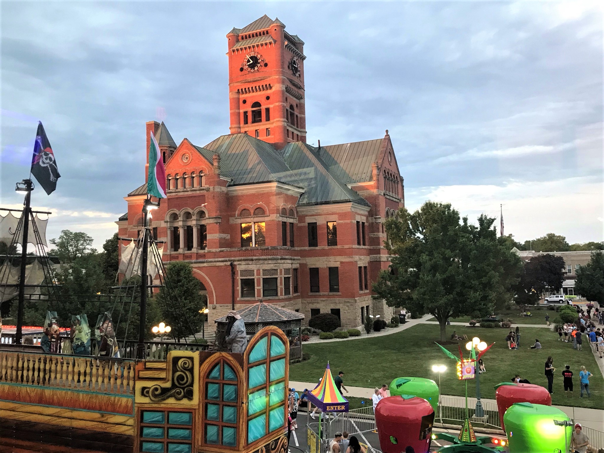 From my new position I was able to catch this photo of a pirate attack on the Noble County Courthouse. Turns out those brick walls hold up pretty wall against cannon balls, which I later learned were paper mache, which might have made a difference. No pirates were harmed.