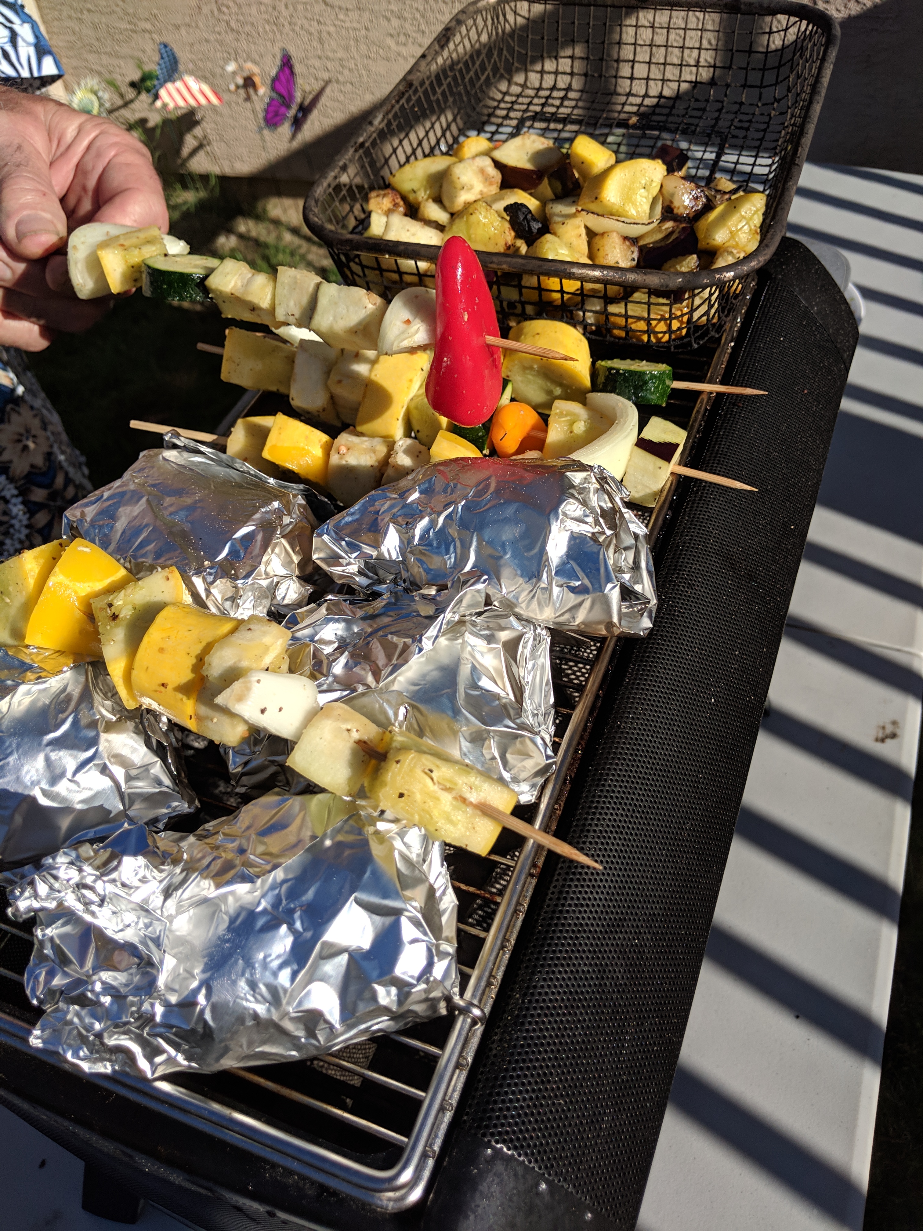 No steak for me, but those veggie kabobs are looking mighty tasty!
