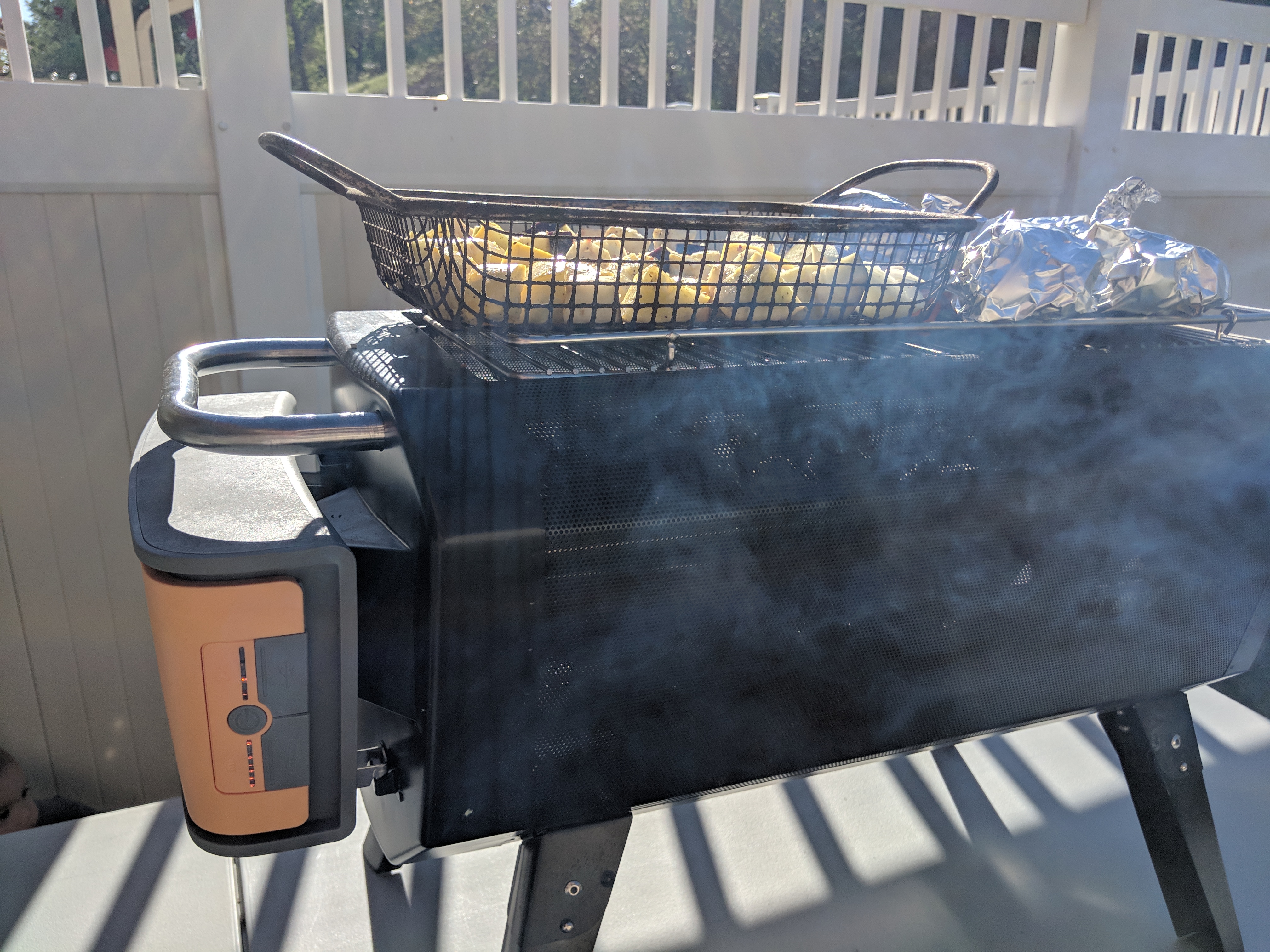 While I waited on the meat to cook, I took some zucchini, eggplant, onions, bell peppers and grilled them on my BioLight Firepit. I also wrapped some potatoes in tinfoil and stuck them next to the coals, as you can see my grill has limited grilling space. One of the few cons of the BioLight firepit