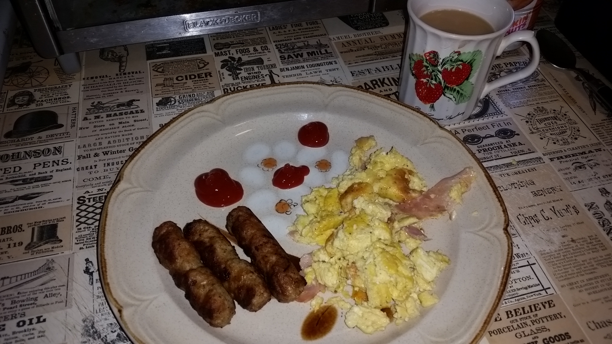 my dog loves eggs too...actually she loves everything we eat LOL Apples are one of her favorites. Sausage and Eggs or Bacon and Eggs is my way of starting the day off on the right fork.