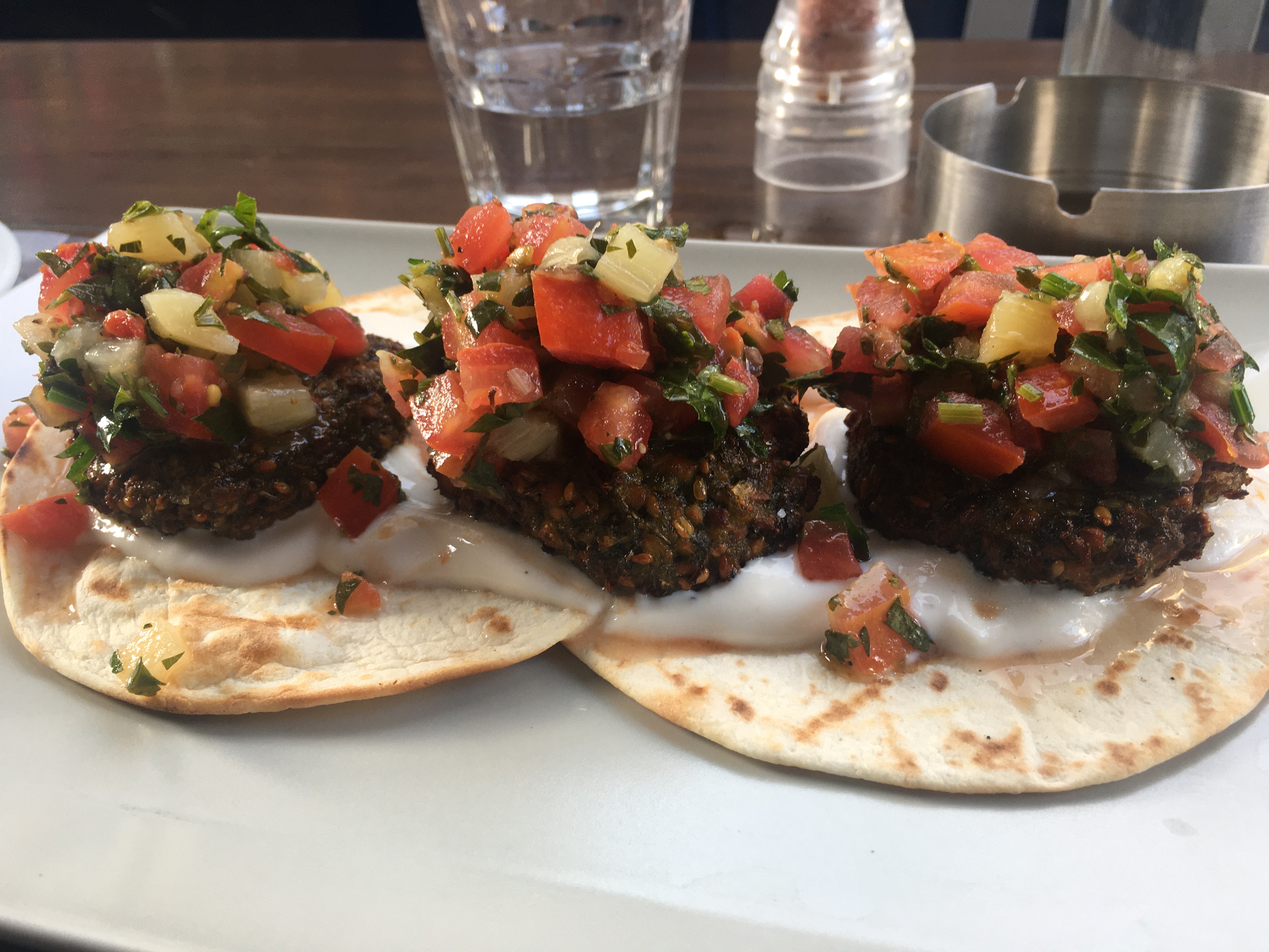 The mains were prefaced by a semi edible falafel appetizer that looked much better than it tasted in my opinion. According to the hubby it was perfectly adequate.