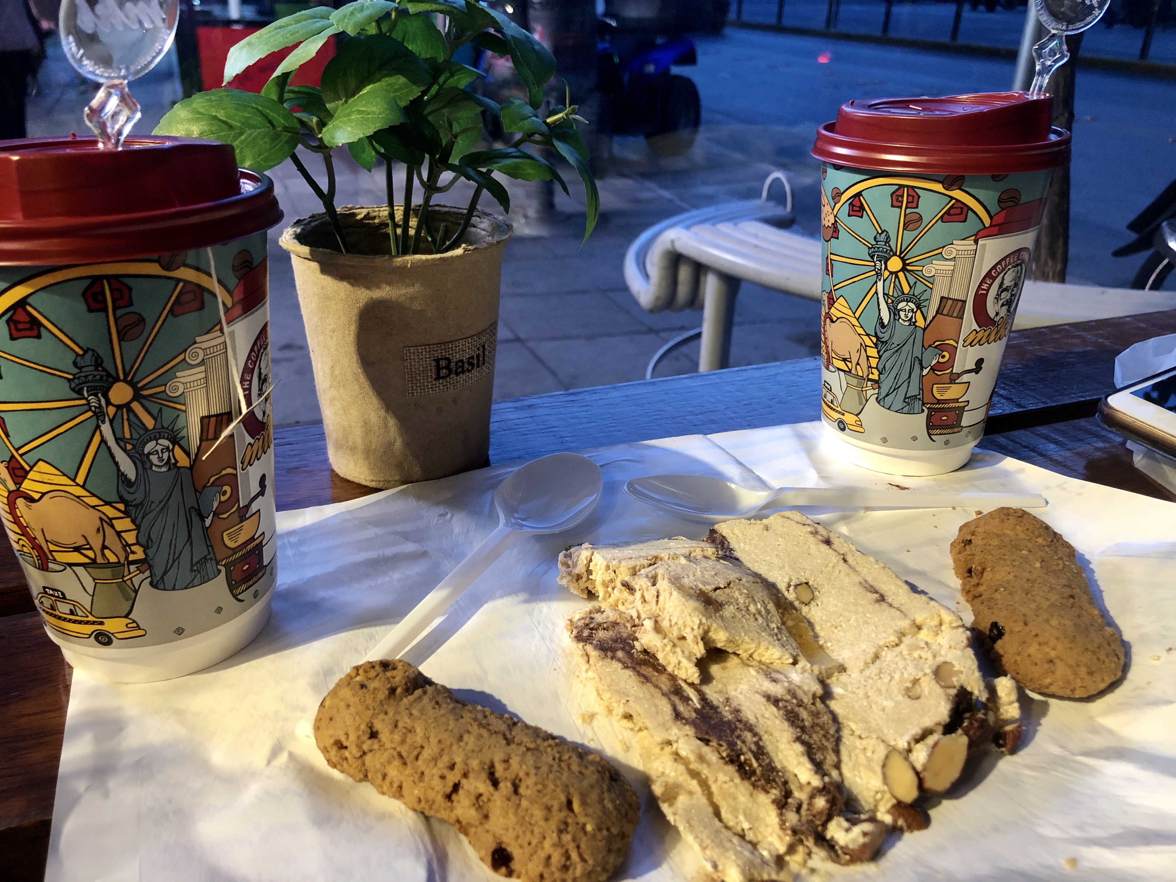 We are currently looking for a quaint cafe to sit outside and enjoy some hot tea with our recently copped gluten free dessert.