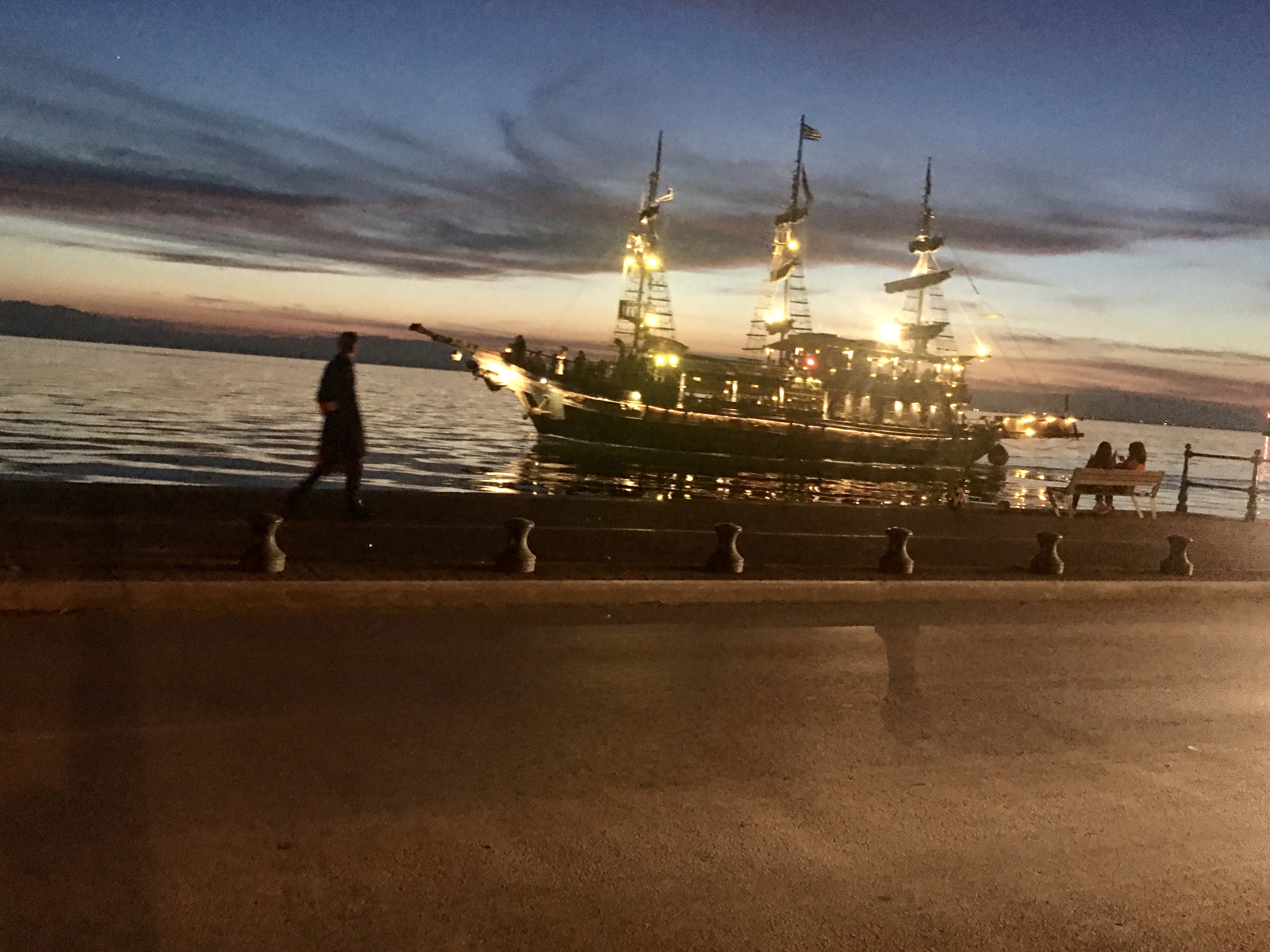 Not much to see tonight but still charming enough. I pulled out my shisha pen and began to set up our small dessert station. Don’t mind the plastic spoons and cheese paper plate, we were improvising in a place where everyone speaks Greek. The only words I know are “hello”, “please”, “thank you”, “asshole”, “I love you”, and the names of some very specific Greek cookies. Now you try and ask for gluten free with that vast vocabulary 🤷🏼♀️