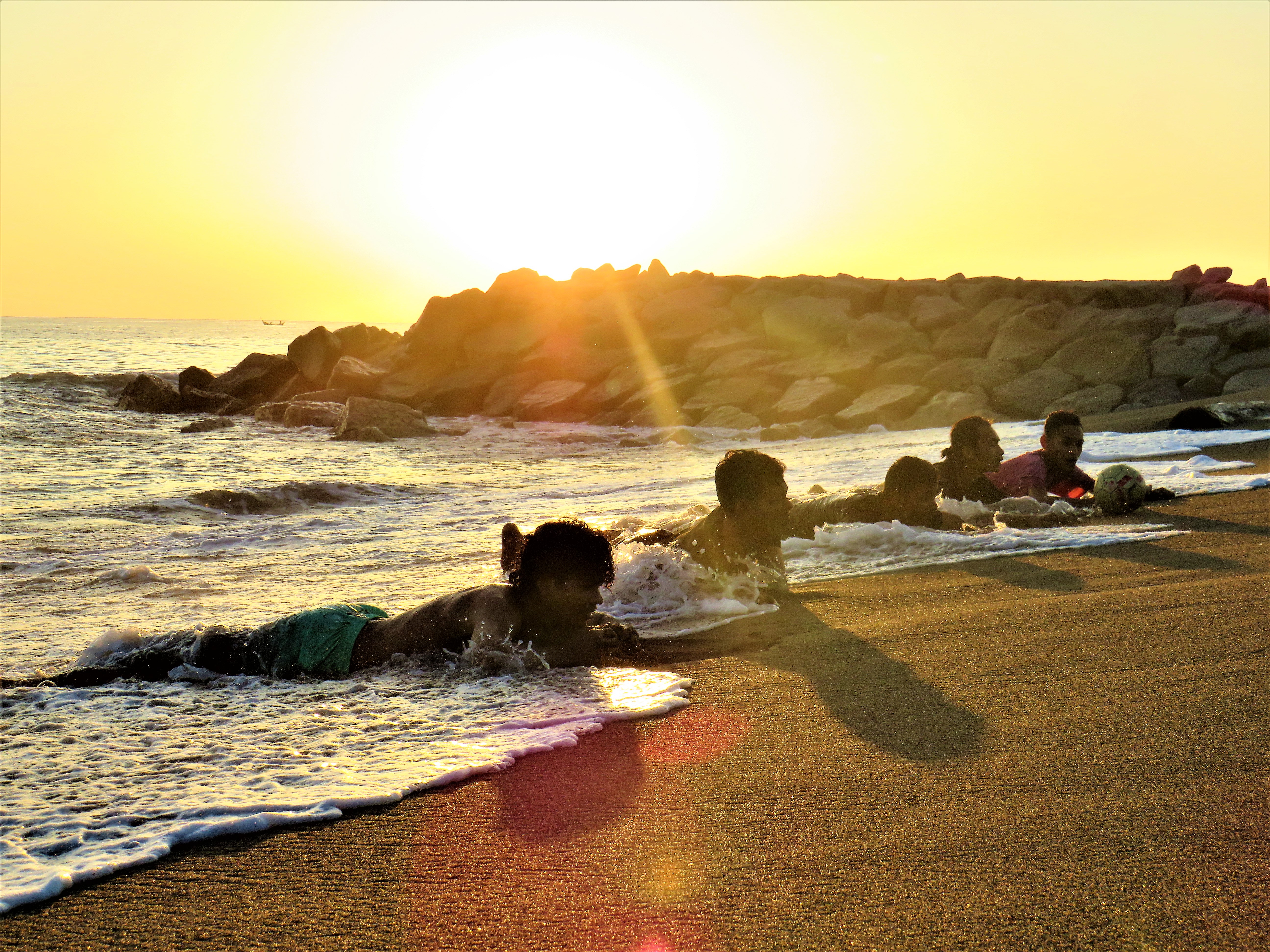 Playing ball and sunbathing on the beach is very pleasant and very beneficial for our body with the morning sun is very helpful to cure diseases in our body, and the most important thing can help to our immune system and get a lot of energy from the sun at the time morning.