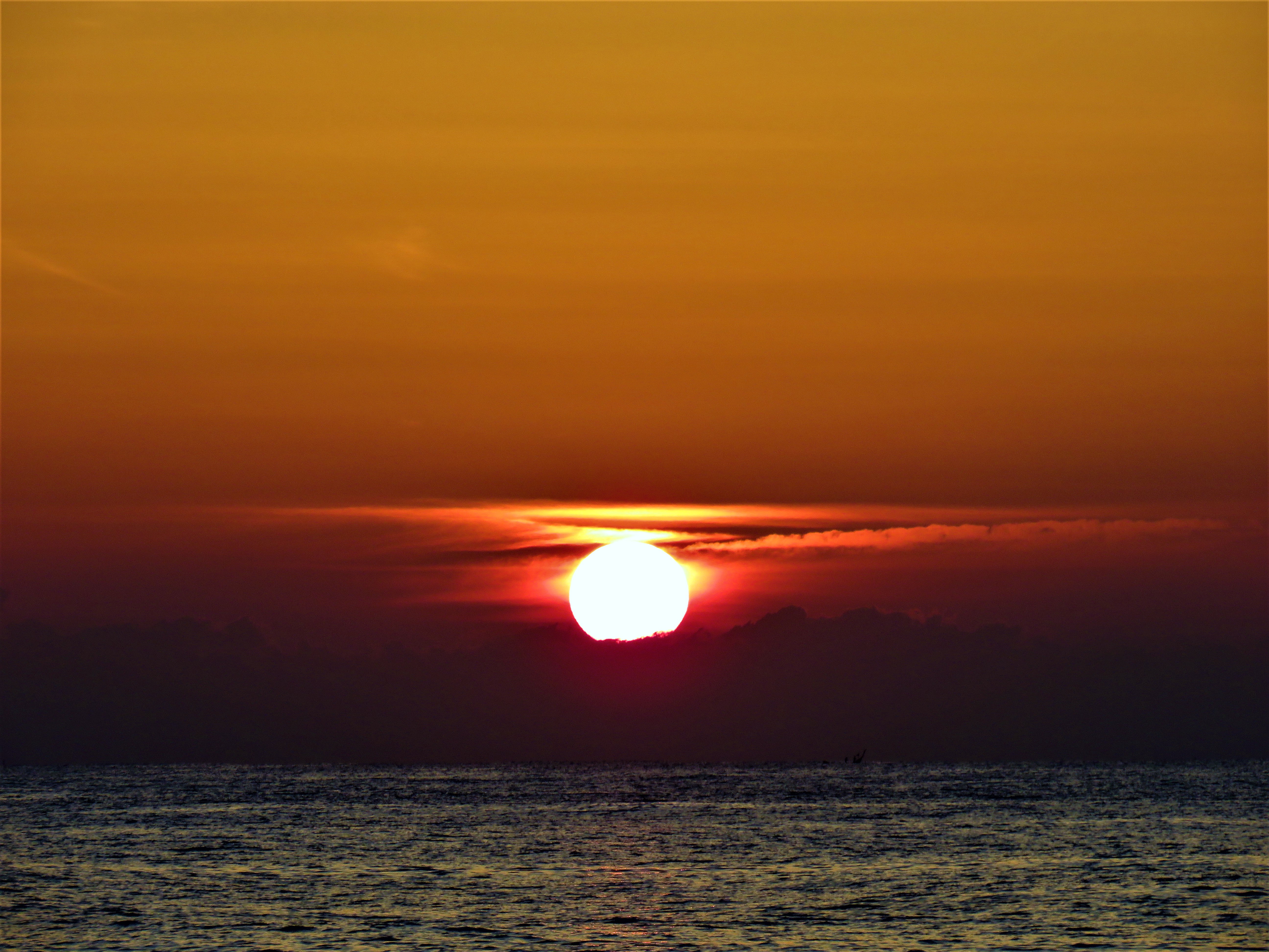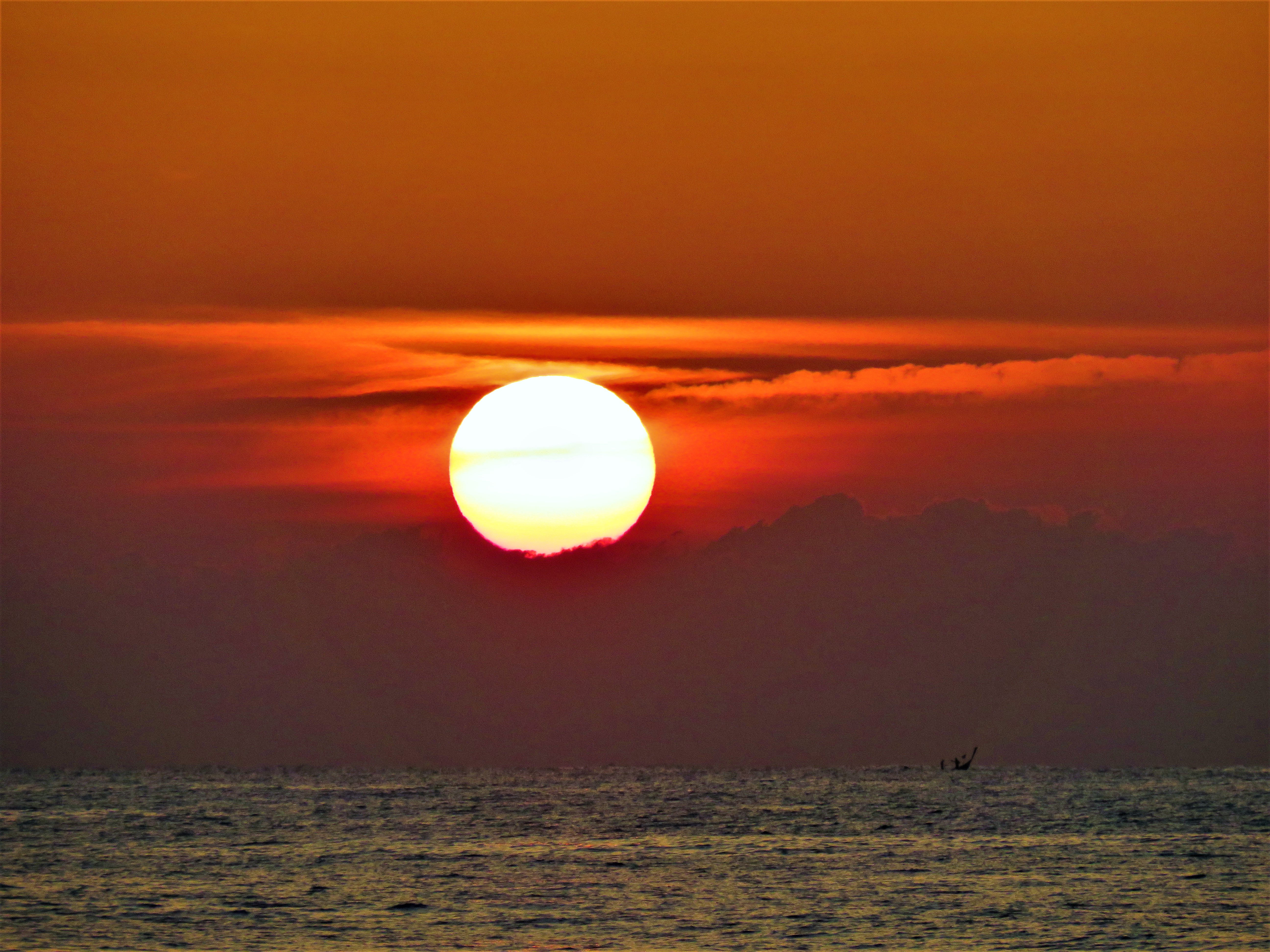 Who doesn't want to see this beautiful scene with a view that spoils the eyes. it is very complete there is a sea with a new sun coming out and with cold weather it must be at home and do not want to move from that place.
