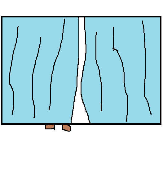 We step in the room, we see a pair of shoes poking out from under a curtain, a poor attempt at concealment of whoever is behind it.