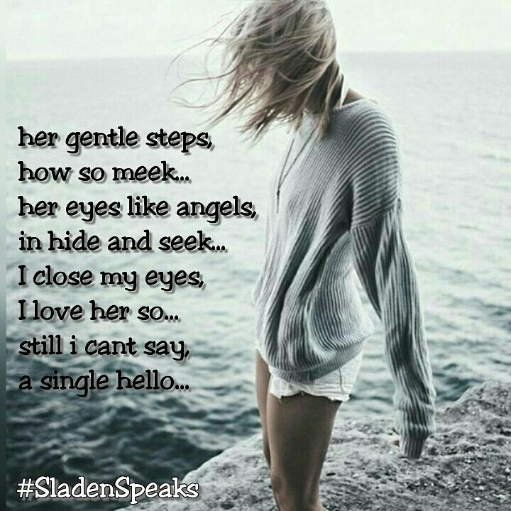 "Her gentle steps, how so meek.. Her eyes like angels, in hide and seek.. I close my eyes, I love her so.. Still I couldn't say, a single hello.."