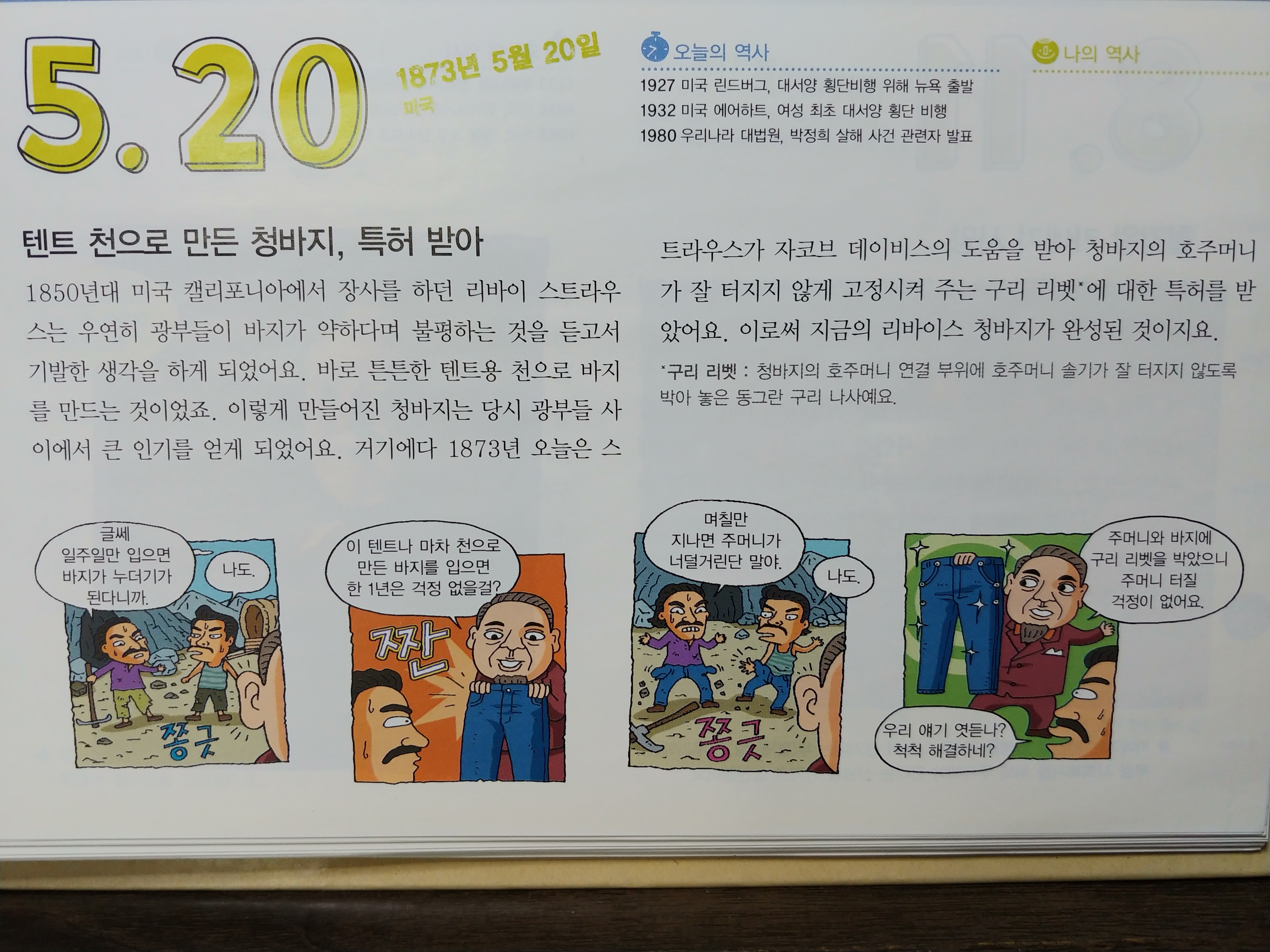 그런 훌륭한 물건의 유래를 찾아보니 리바이 스트라우스라는 사람이 광부들이 바지가 약하다며 불평하는 소리를 듣고 튼튼한 텐트용 천으로 만든 것이라 하니 그의 발견과 활용에 찬사를 보내고 싶다.