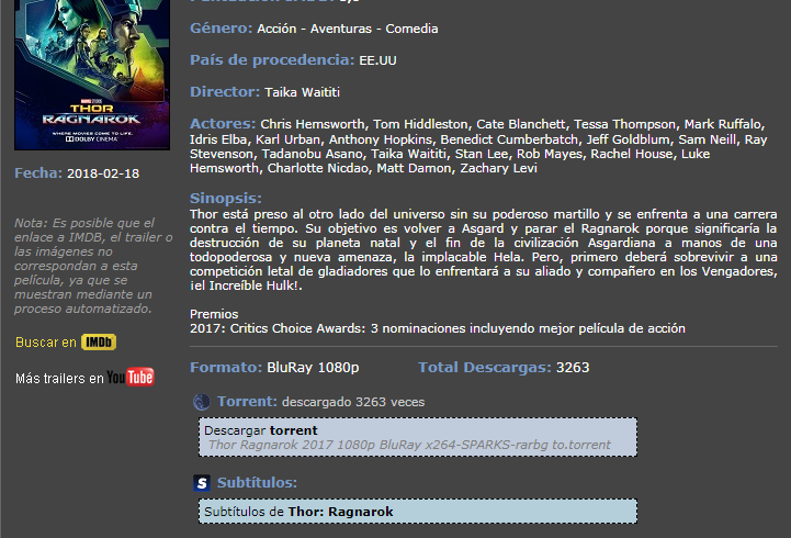 buscamos thor ragnarok y en la definicion que la deseemos ver o que nuestras computadoras soporten, una vez encontrada le damos click a la opcion que deseemos y se nos abrira esta pagina.