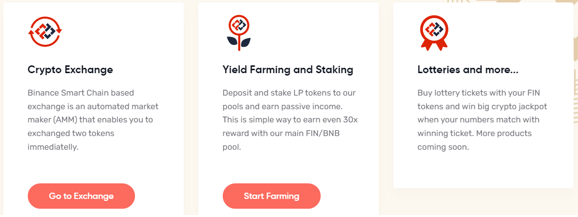 The FIN token is also issued on the Binance Smart Chain, which makes transactions with this token faster than on the main Ethereum network, and makes it possible to pay a relatively low commission on this network.