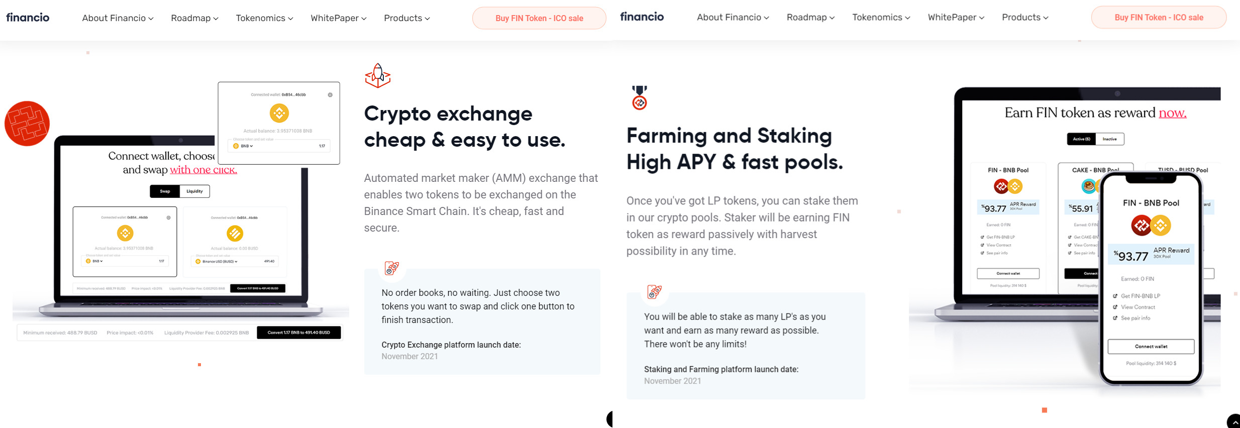 Financio будет обслуживать различные потребности пользователей, связанные с децентрализованными финансами. А принятие протокола BSC, даст возможность платить сравнительно небольшие комиссии при совершении сделок, которые, в том числе, будут отличаться большей безопасностью для пользователей.
