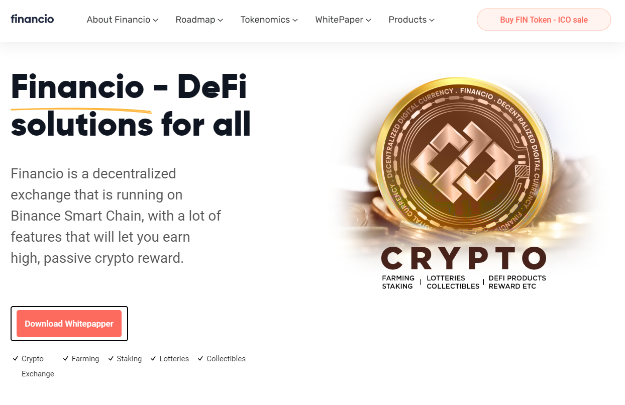 Financio стремится стать решением DeFi для различных нужд пользователей. Здесь пользователи могут получить доступ к различным функциям DeFi для своих различных нужд, таких как обмен криптовалюты, фарминг, стейкинг, лотереи. Financio - это платформа DeFi, необходимая сегодня пользователям крипто валют, особенно тем, кто ищет полнофункциональную платформу DeFi.
