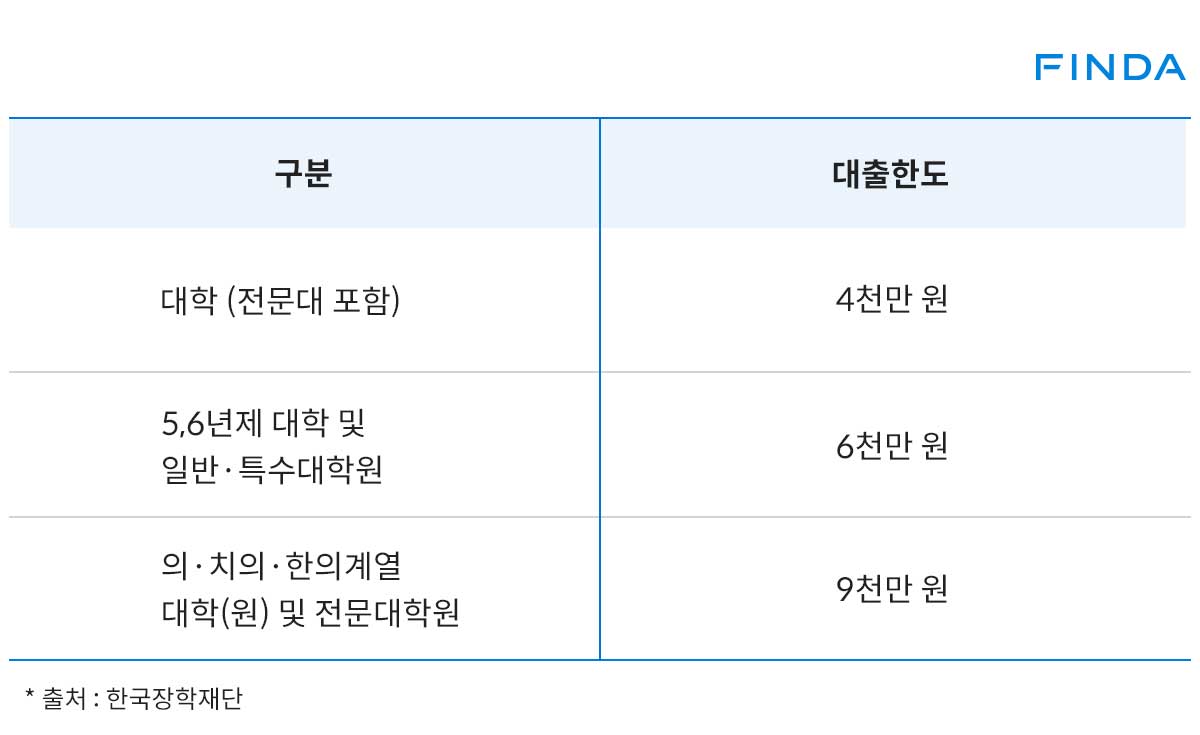 단, 하나 알아둘 점은 취업 후 상환 학자금 대출은 대출자 고등교육기관별 총 등록금 대출한도가 없으나, 일반 상환 학자금 대출은 대출자 고등교육 기관에 따라 총 등록금 대출한도가 있다는 것이다.