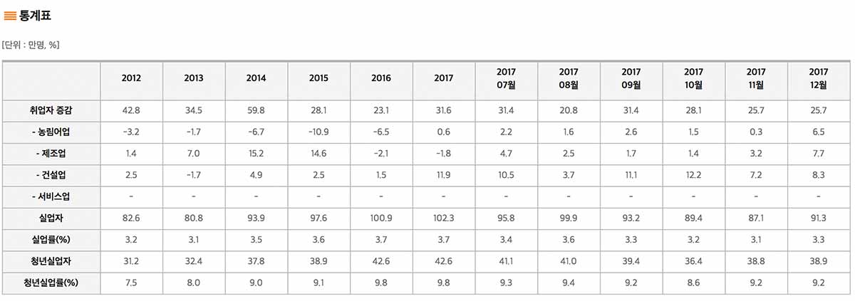 또한, 청년실업률은 2012년부터 꾸준히 상승세다. 2014년부터 9%를 넘어섰는데, 1990년 이후 1998년 외환위기 때를 제외하고 9%를 넘은 것은 처음이다.