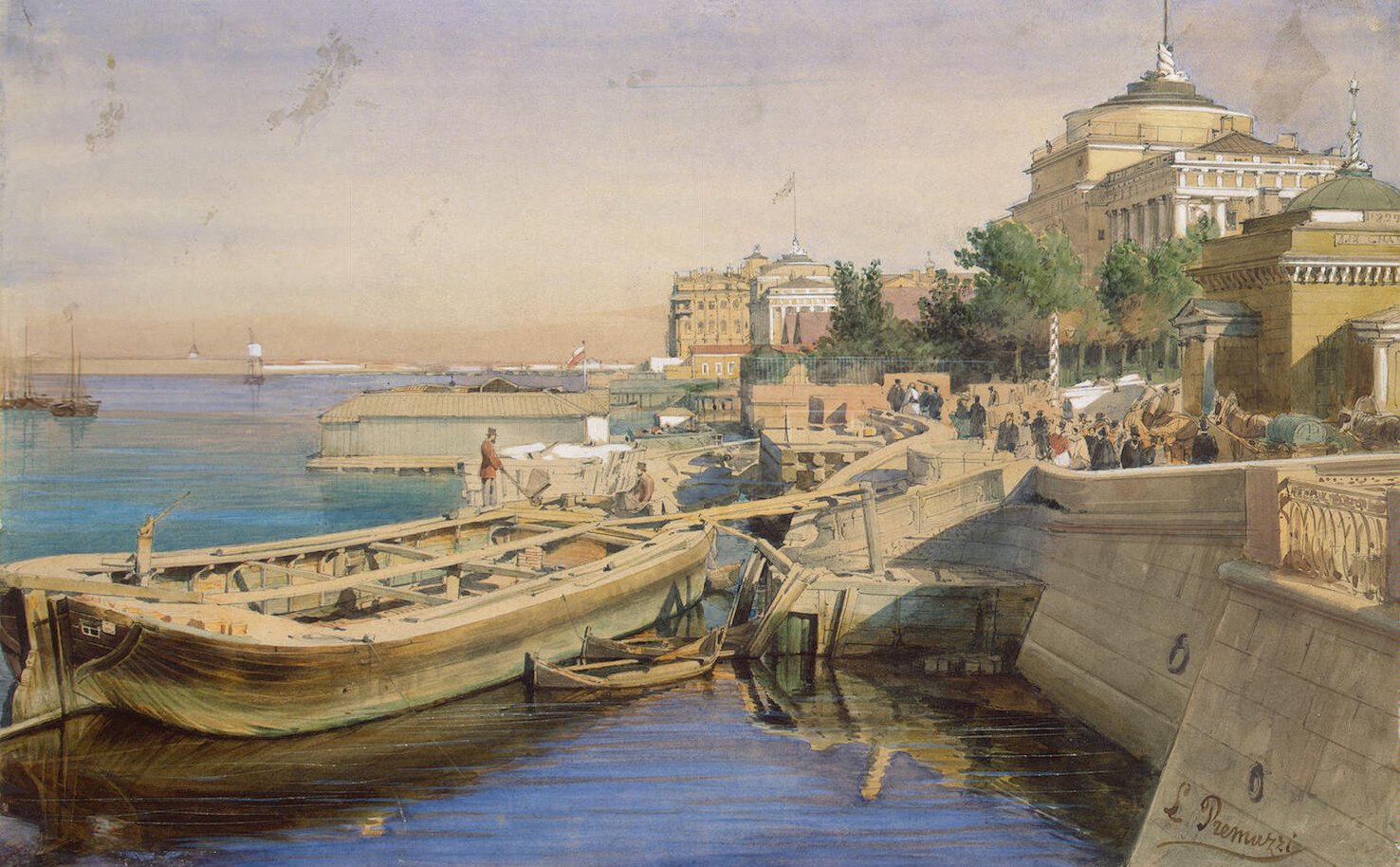 '' View of the Neva Embankment , St Petersburg '' , Drawing , Watercolour, white and gouache , Image Source