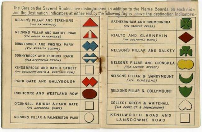 - Symbols for Various Tram Routes in Dublin (1910): Dublin United Tramways Company, Courtesy of The Irish Railway Records Society, Public Domain