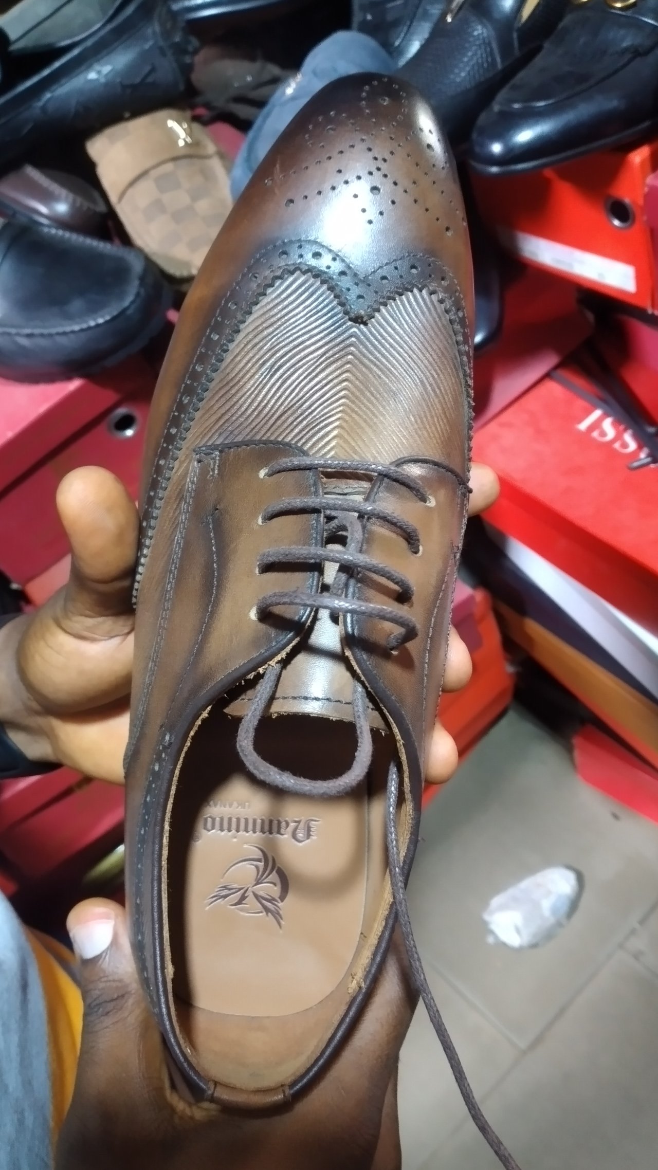 Like I said he known for selling quality and orginal shoes, mostly Italian. He's very popular in Ifo market, most of his shoes are always imported with carton directly from the marker store.