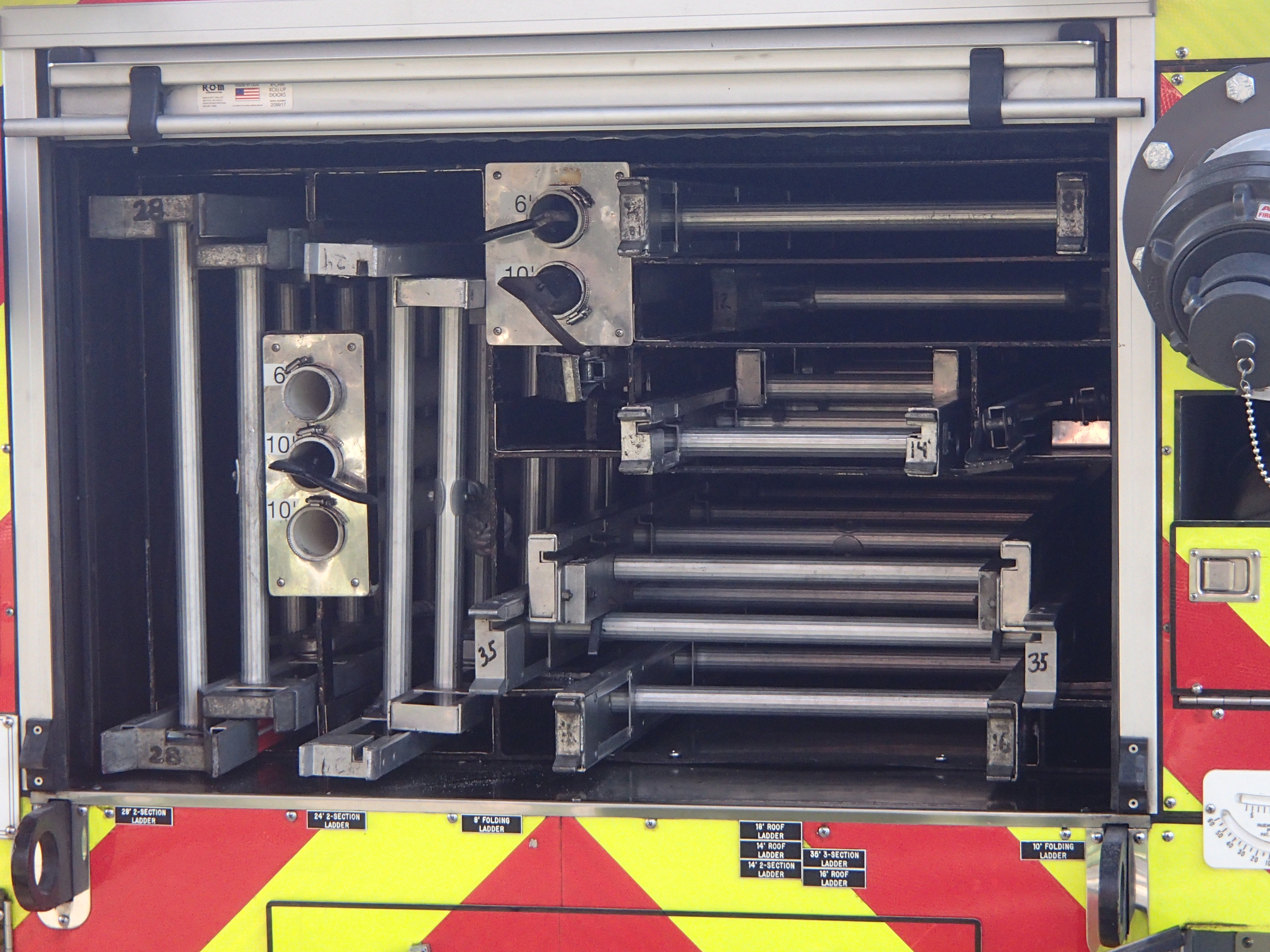 Ladders? Oh yeah, we got ladders. Sometimes, due to power lines, trees, setbacks, or other factors, you can't get the aerial where you want it, and that's where the ground ladders come in. A ladder company isn't just a truck: It's the truck, the equipment it carries, and the trained manpower onboard that work together to accomplish the job. If a truck shows up with empty compartments and no passengers, it's ... a truck.