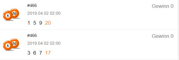 Gewinnzahlen der Ziehung 4 aus 20