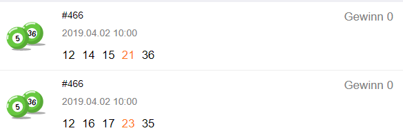 Gewinnzahlen der Ziehung 5 aus 36
