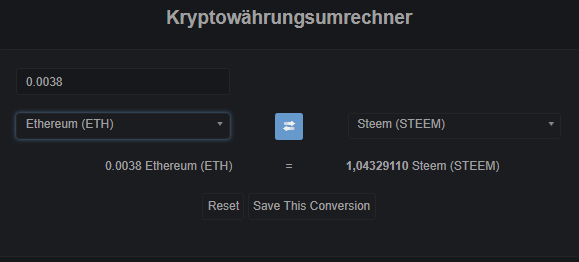 Und wieder ein kleiner Gewinn in Höhe von 0,0038 ETH. Das entsprechen bei aktuellem Wechselkurs 1,04 Steem.