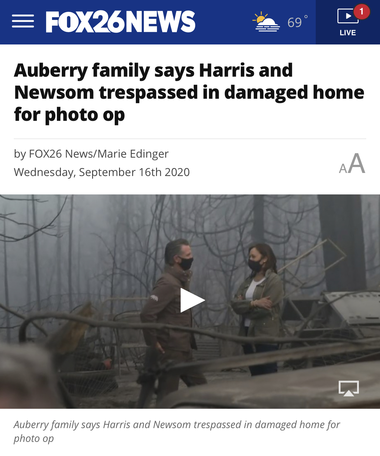 Auberry family says Harris and Newsom trespassed in damaged home for photo op - FOX26 Newsfreedumbnews (54)in #fires • 5 years ago Auberry family says Harris and Newsom trespassed in damaged home for photo op READ MORE: http://kmph.com/news/local/auberry-family-says-harris-and-newsom-trespassed-in-damaged-home-for-photo-op FOX26 News #lifestyle #california #usa #hiveusa #election #climatechange #politics