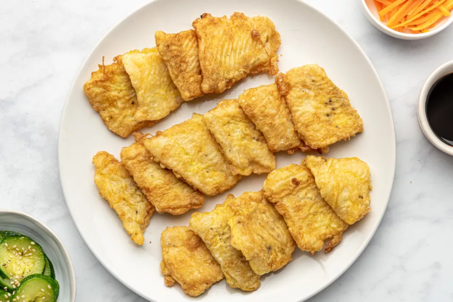 흰살 생선 구이는 만능 요리이며, 한국의 이 조리법은 간단하고 맛있는 표현입니다. 흰살 생선 필레는 먼저 밀가루로 코팅한 다음 풀어진 계란으로 코팅합니다. 생선은 약간의 기름에 살짝 황금빛이 돌고 바삭해질 때까지 튀겨집니다. 계란과 밀가루가 얇게 코팅되어 요리가 쉽고, 작은 생선 조각으로 먹기가 쉽습니다.