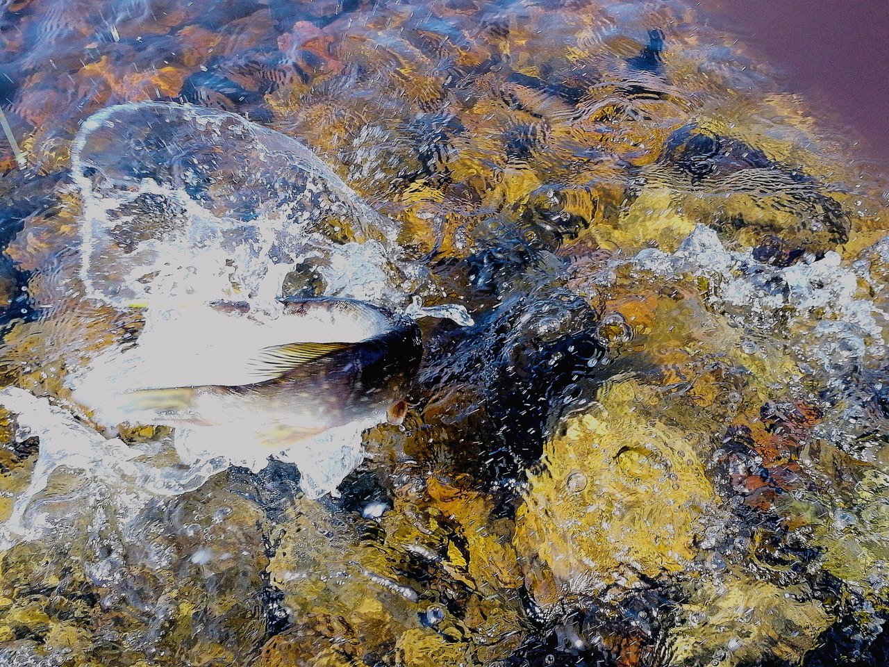 Следующий час я посвятил методичному облову близлежащих "жабовников" с целью уменьшения популяции шнурков. Не крупные разбойники весело вешались на Meps long и Kosadaka Micron, даря не с чем несравнимое ощущение "драйва".