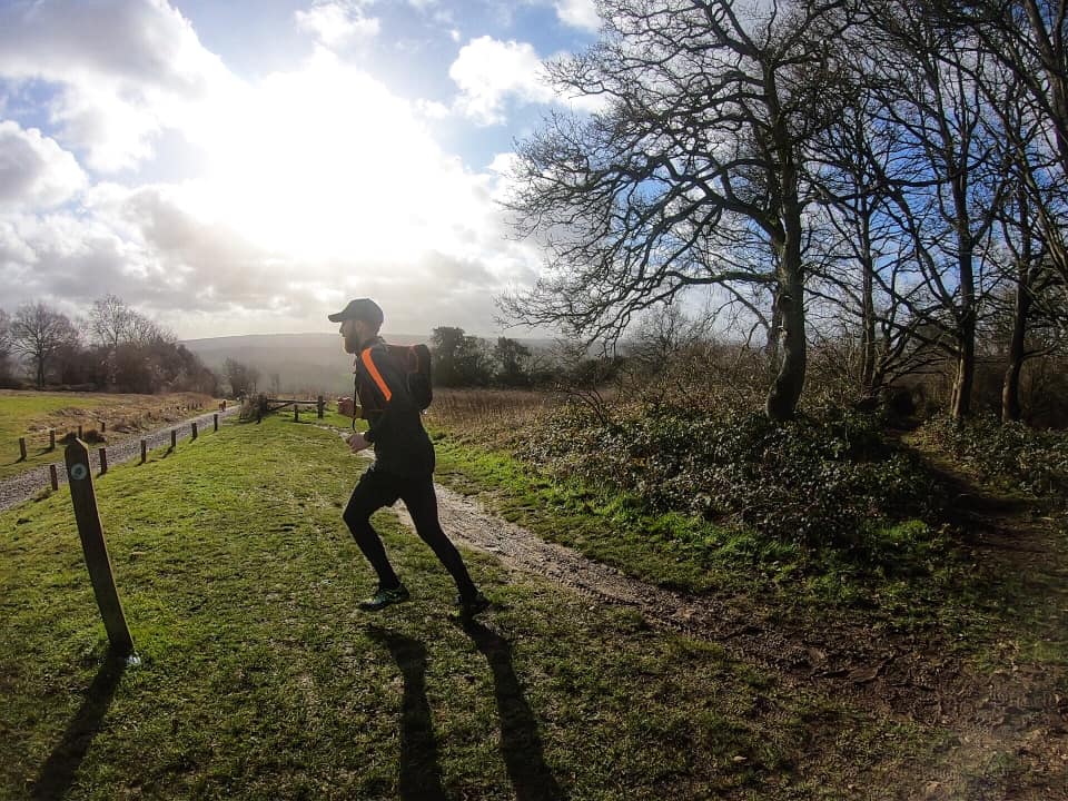 The whistle blew at the start line and we were off, I was trying to maintain around a 5min/km pace but sometimes would go faster due to keeping up with other racers, after a few miles down street paths we turned down the north downs into the beautiful trails which would be the remainder of the race, This was a mud heavy race and the proper footwear was needed to get through the terrain faster my Innovate X-Talons were fantastic with this, the aggressive tread making the boggy trails Childs play.