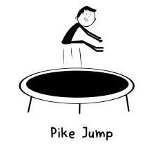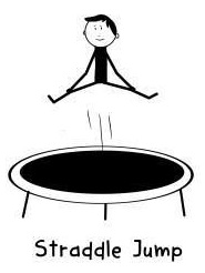 The Straddle Jump is similar to the pike jump except that the legs are spread sideways approximately 90° apart and the arms reach forward towards the pointed toes.