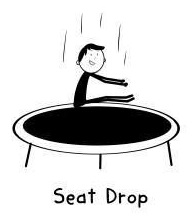 Seat Drop or Seated Landing in trampolining is landing in a seated position with your legs straight in front of you. Your hands support your body on either side of your hips and very slightly behind the posterior, palms down with fingers pointed forwards towards your pointed toes.