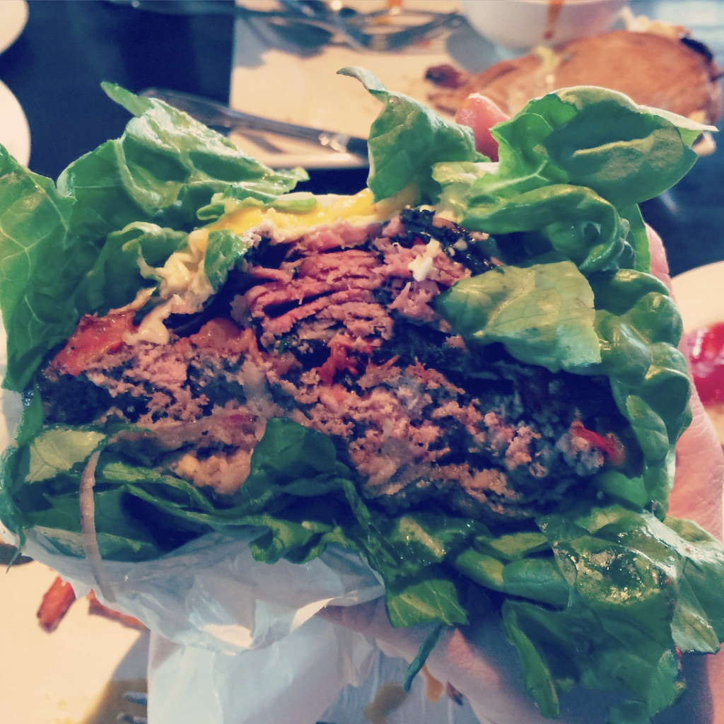 Chris still truly likes to have a bun with his burger, so we do exchange off and get it in some cases when we're sharing... Be that as it may, on the off chance that it were dependent upon me, I'd never have the bun and would dependably select new, crunchy lettuce! There's likewise an eatery here in SB that places your burger (with all the fun fixings) onto a little softly dressed arugula serving of mixed greens on the off chance that you lean toward it without the bread. Absolutely my stick!