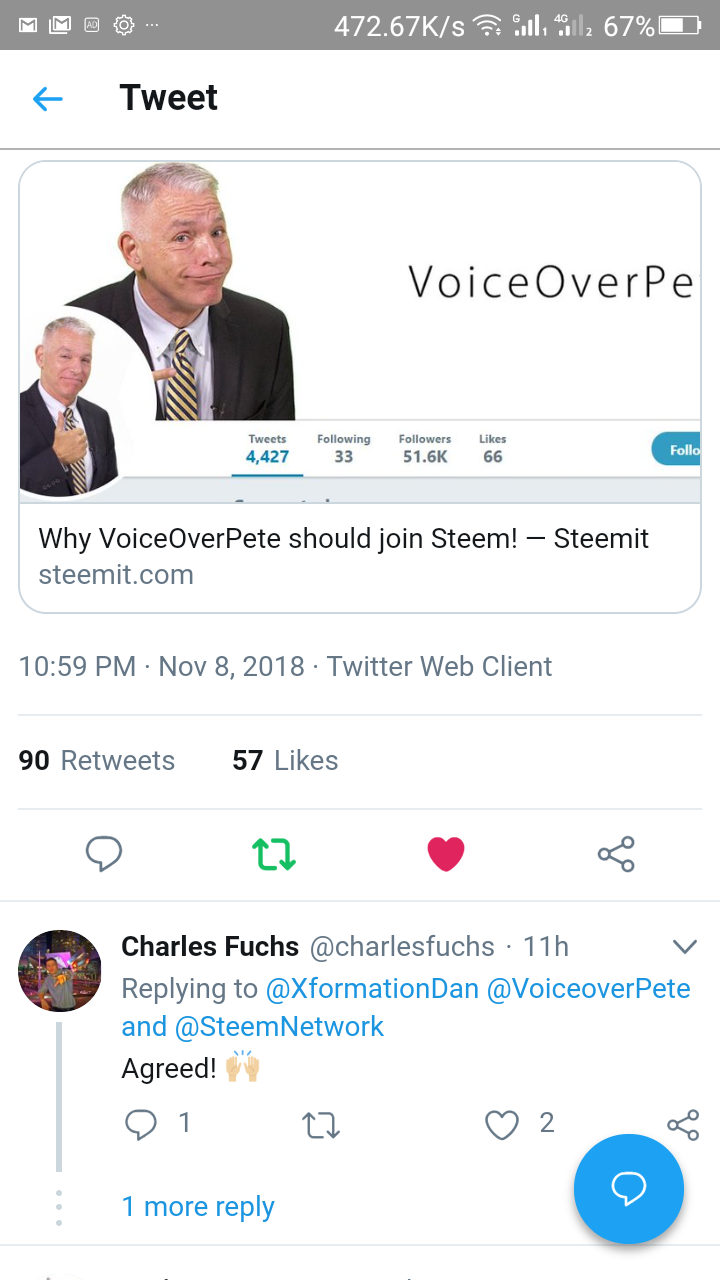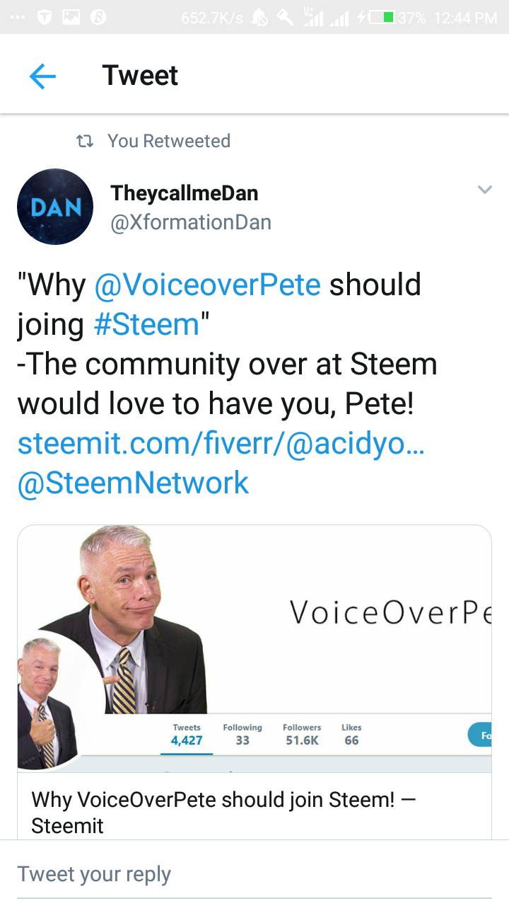Great! Thanks for the help! :) Let's get him to consider Steem as well!