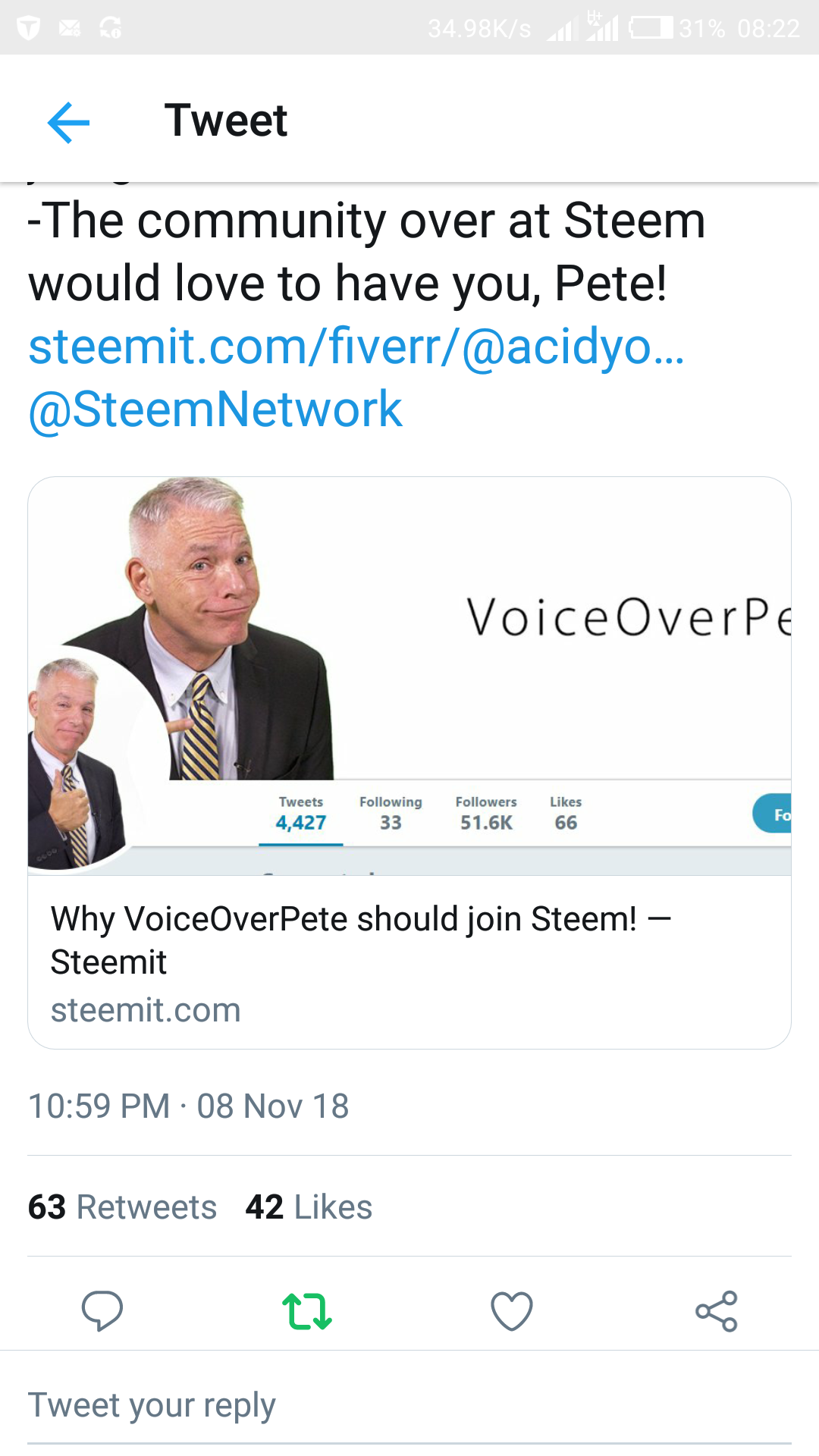 Is there a fiverr dapp on Steem? Ive been asking about one for almost a year now. Too much talent not to utilize it. Im going to tweet this to him now... Thanks for the heads up!