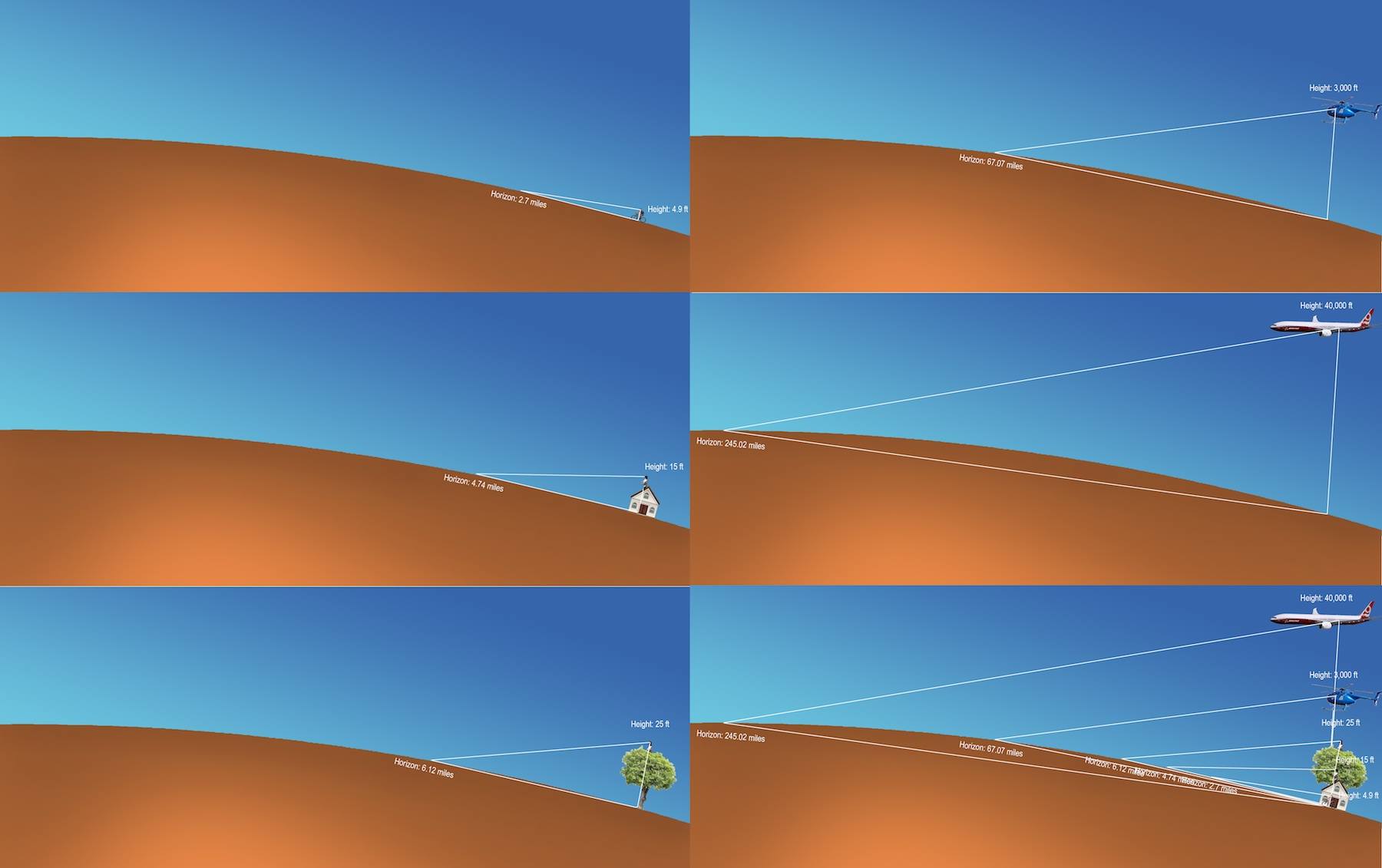 And simply seeing further at altitude. Again, that IS the curvature of the earth.