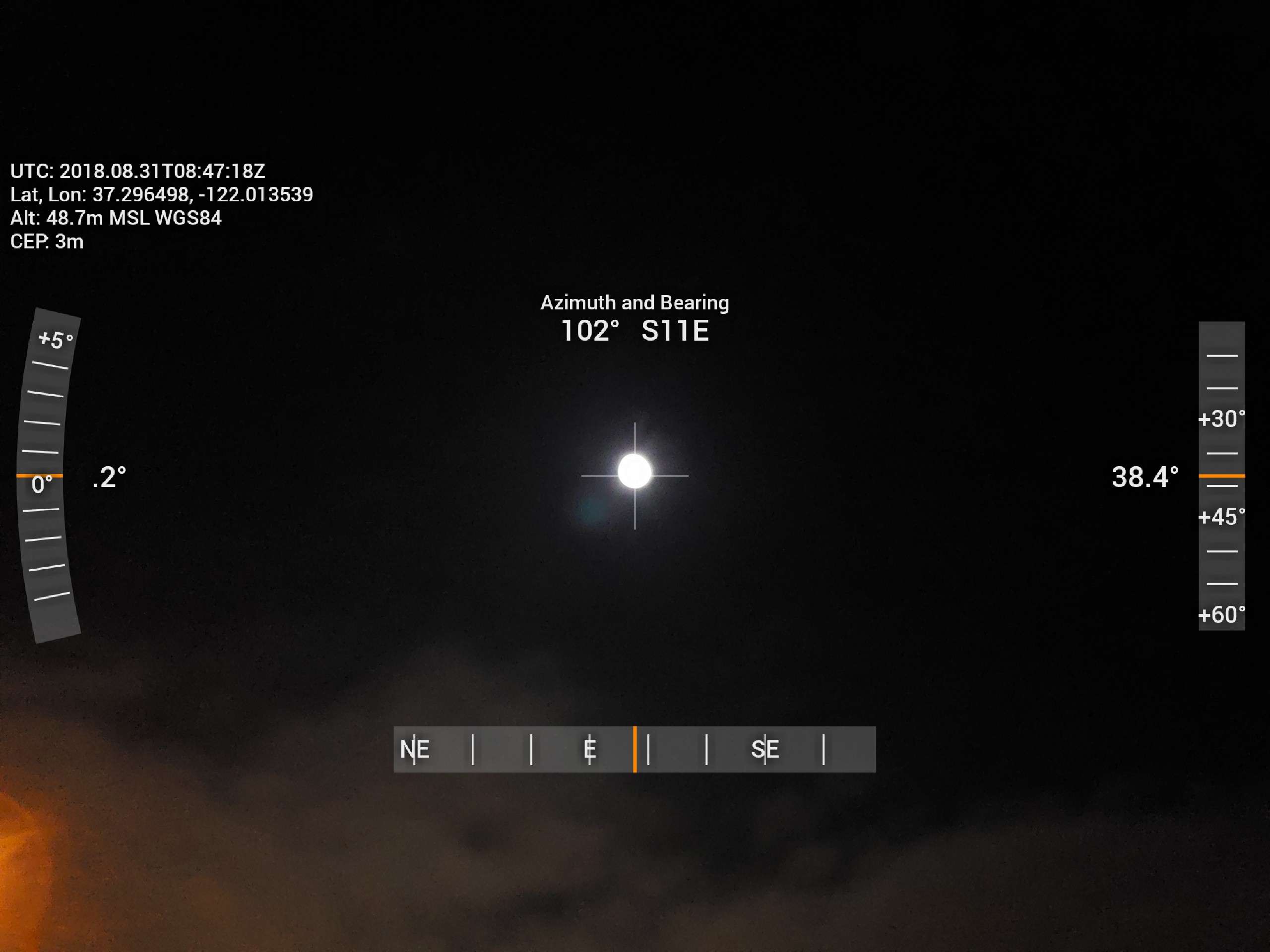 Dioptra: Azimuth 102 deg magnetic & Altitude 38.4 deg
