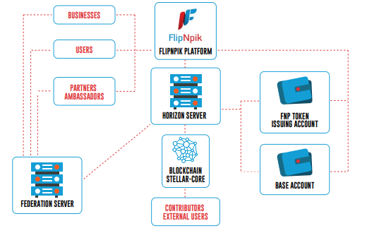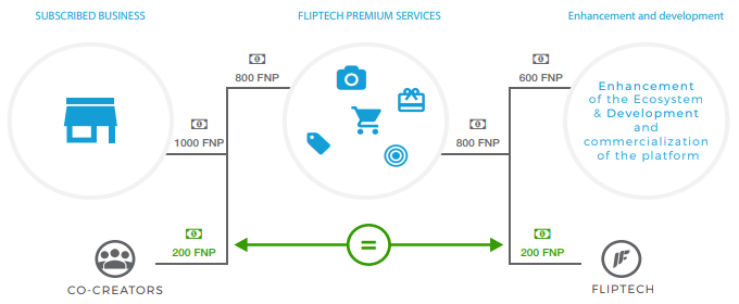 FlipNpik effectively uses two currencies: the Flip Social (FS), a platform reward system, and the FlipNpik Token (FNP). Users will receive FS for simply being active on the platform, referring others and using FNP, and will spend it to participate in games and special offers. The token could be used in the same way as FS, but will also give access to premium features. Businesses will use it to access advanced marketing tools, personalised support and big data on their profile visitors, increase their visibility, implement special promotions and provide an augmented shopping experience for subscribers. Finally, both sides could use it to interact with each other on an online marketplace.