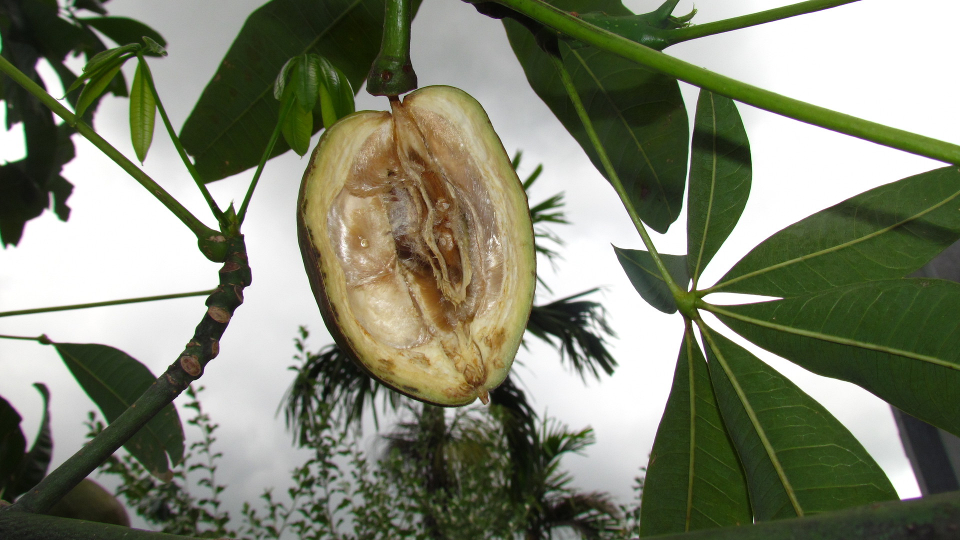 Secara botani, kastanye Malabar adalah pohon besar yang tingginya mencapai 18 meter. Ini menghasilkan bunga yang tidak biasa - kelopak putih panjang, hingga 15 sentimeter panjang, berakhir dengan benang sari oranye. Setelah satu atau dua hari kelopak bunga putih menguning sehingga pohon memberi kesan memiliki perbungaan dua warna. Akhirnya mereka akan jatuh dari cabang-cabang, seperti semua bunga. Pohon yang lebih besar juga akan menghasilkan kacang yang dapat dimakan yang tumbuh di dalam polong kayu keras. Setelah matang mereka akan meledak terbuka dan jatuh ke tanah, menyebarkan kacang coklat keemasan di sekitar. Meskipun mereka tidak memiliki rasa yang sangat kuat, kakatua peliharaan kami akan siap mengunyah mereka dan mereka juga bisa digiling menjadi tepung untuk ditambahkan ke campuran roti. Di sini di Taiwan, pohon itu tampaknya memberi buah dua kali setahun - pada bulan Maret dan kemudian lagi pada bulan Juli.