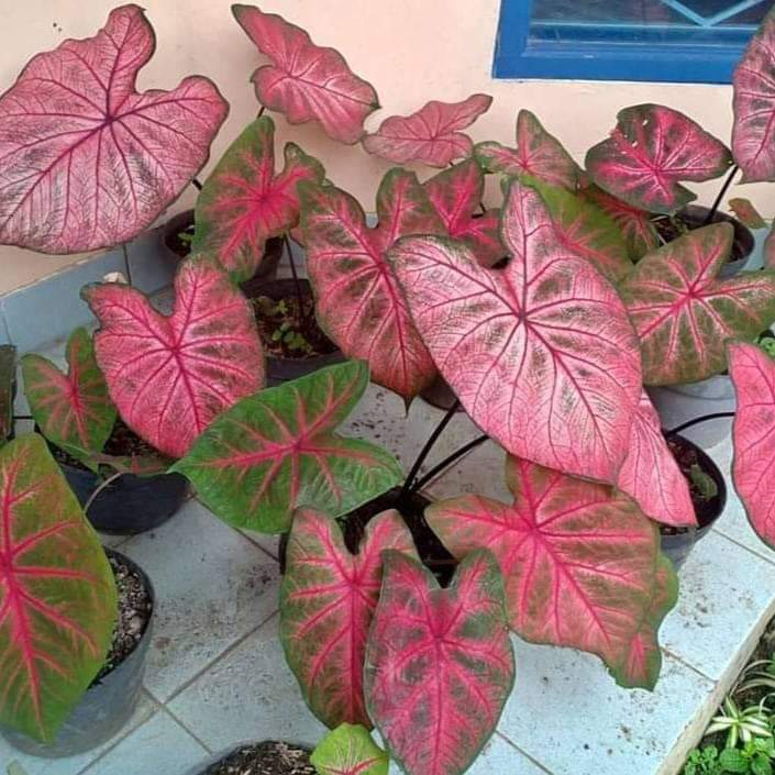 The uniqueness of this ornamental plant is that the leaves are filled with veins that are evenly distributed throughout the leaves, In addition, the taro bones are red, the leaves are red and the leaves resemble a heart.