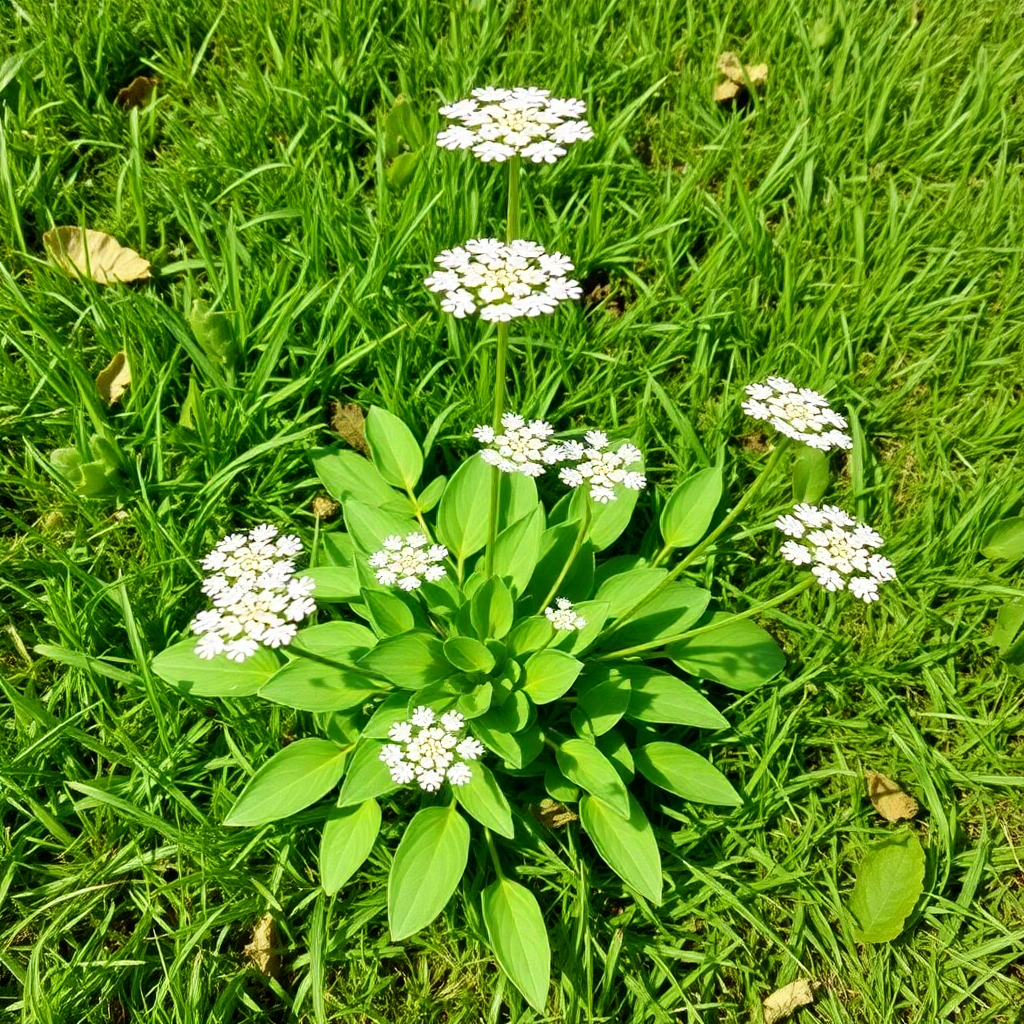 The plant sends up a single, hollow stem that can reach three feet tall, capped with an umbrella‑shaped umbel of up to 30 tiny white flowers. Each flower bears five petals and a distinctive darkened floret at the centre—a subtle cue that the plant is not a harmless ornamental.
