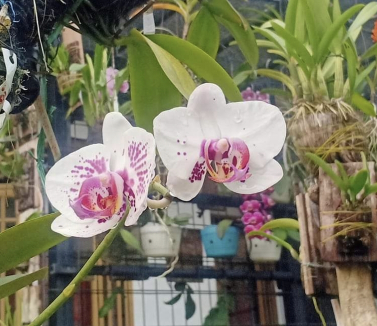 Anggrek merupakan salah satu bunga kesukaan ibu-ibu. Banyak yang menanam dan merawatnya sepenuh hati. Seperti tetangga saya yang satu ini. Banyak tanaman anggrek di pekarangan rumahnya. Dan saya mendapatkan salah satu keberuntungan, bisa mengabadikan bunga-bunga yang ada di rumahnya. Tapi saya sudah dapat izin loh sahabat steemian.