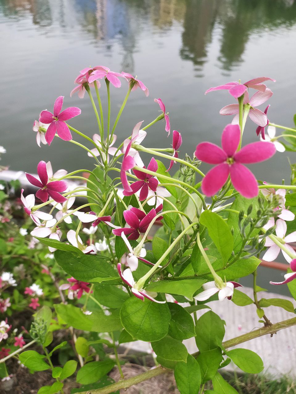 এই ফুলটির নাম মাধুভি লতা। লেকের পাশে খুব সুন্দর ভাবে ফুটে আছে। মোবাইলটা হাতে ছিল তাই ক্লিক না করে পারলাম না।