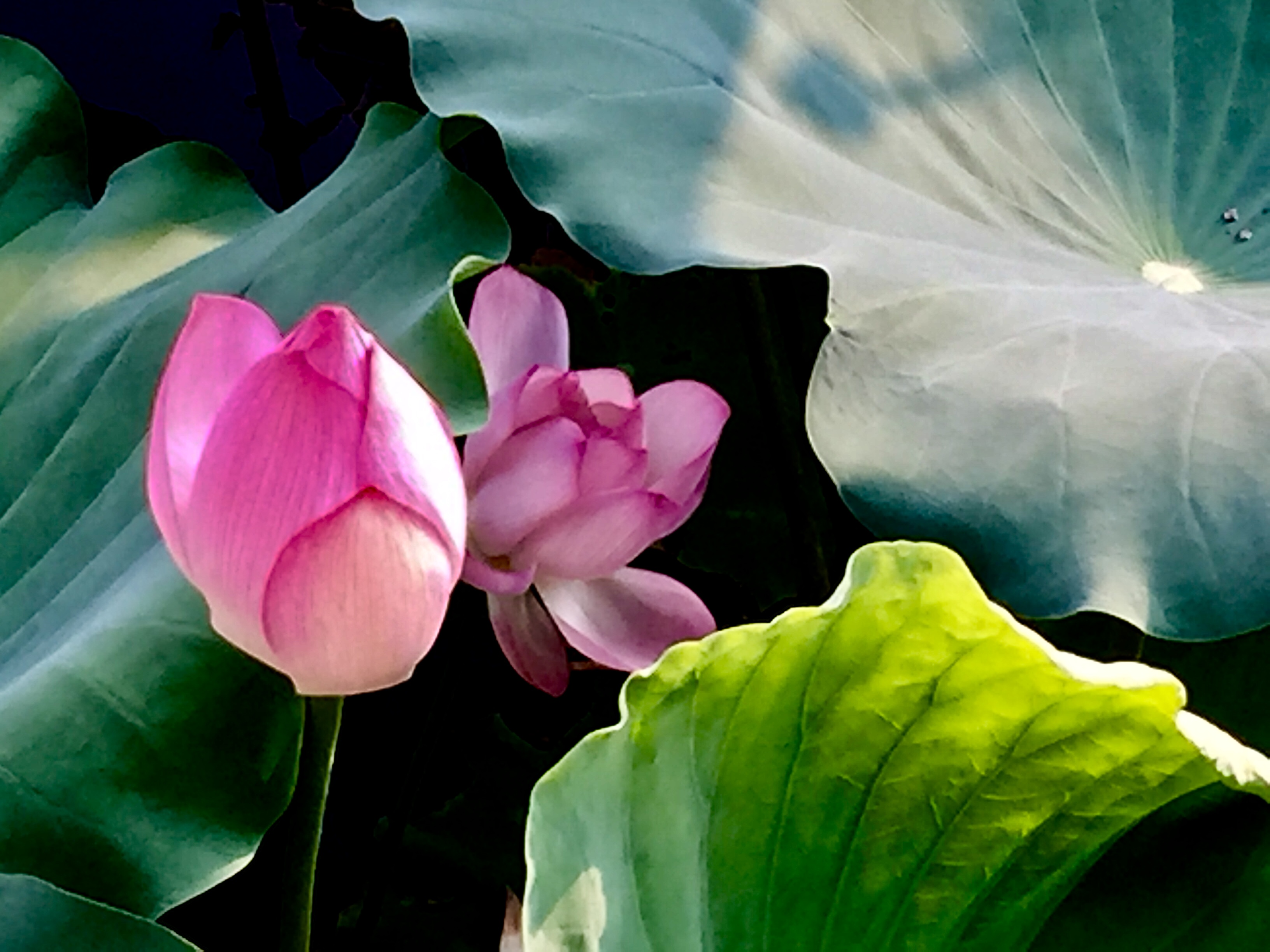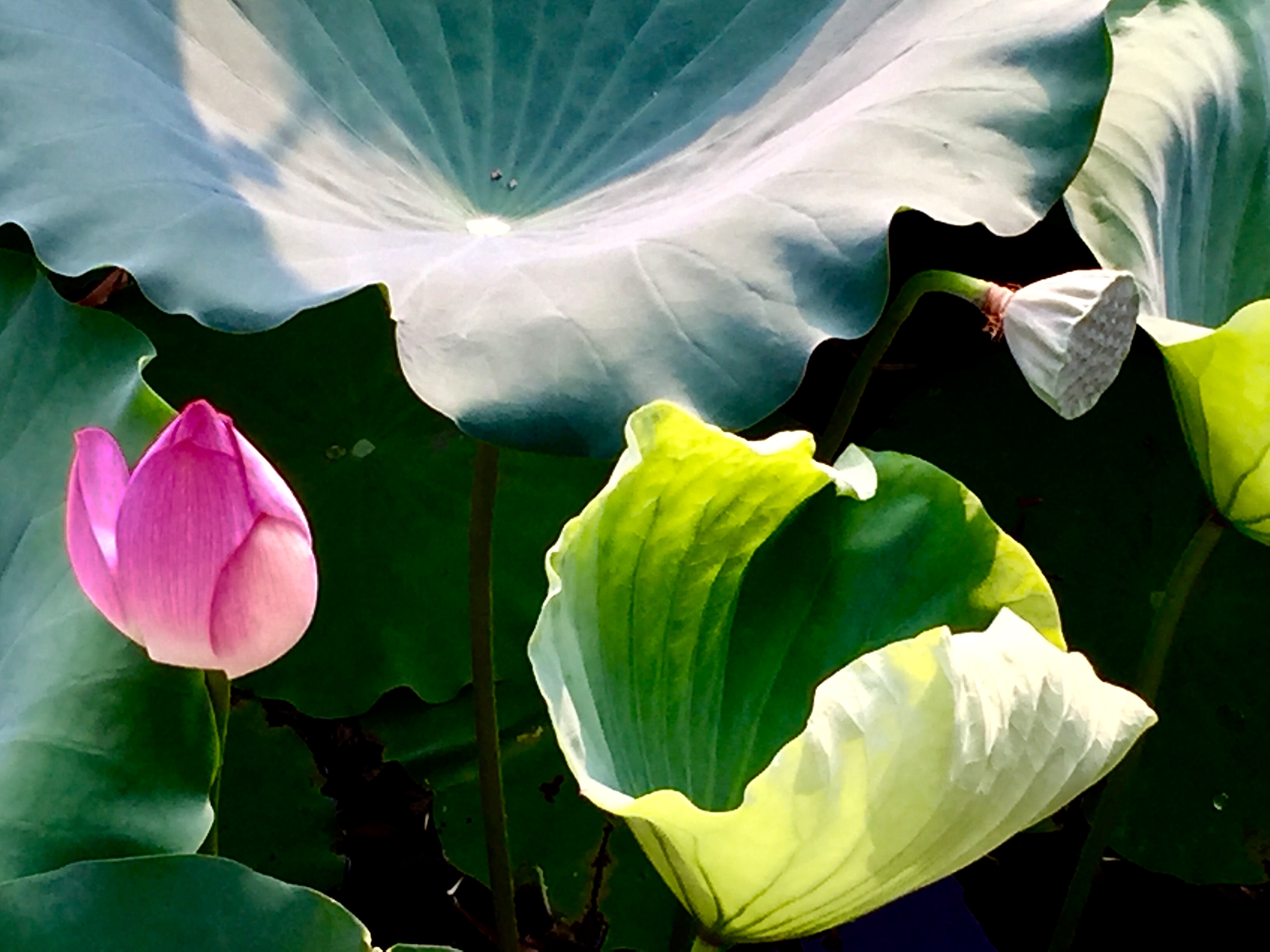 June is the starting season for lotus flower in China. Lotus flowers are very big . They have many colors like red, pink, white and purple etc. Lotusroot and lotus seedpod are some kinds of food. The pics below are taken at a pond inside a 5 star hotel by iphone.