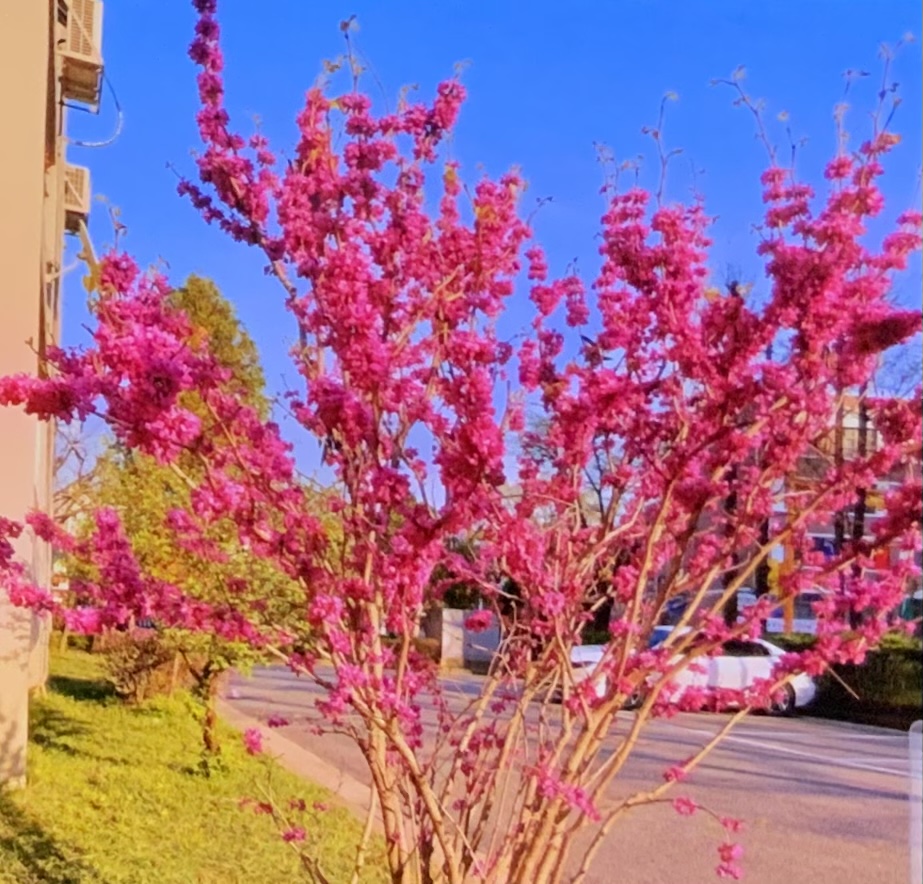 해마다 이맘때 피는 이 꽃 가지에 작은 봉우리 들이 붉게 물들면 벗꽃의 속절 없는 낙화로