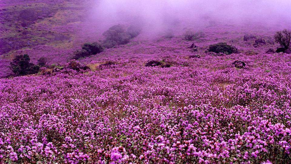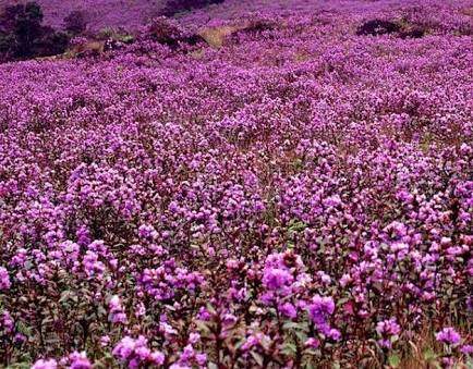 A blooming field of Neelakurinji that happens once in 12 years.