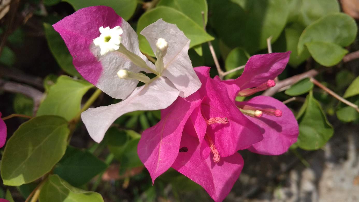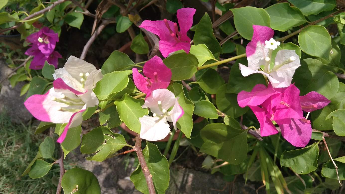 Hari yang menyenangkan bagi saya. Saya melihat bunga kertas yang cantik dengan dua warna. Putih dan ungu dalam satu bunga. Persilangan yang indah menurut saya.