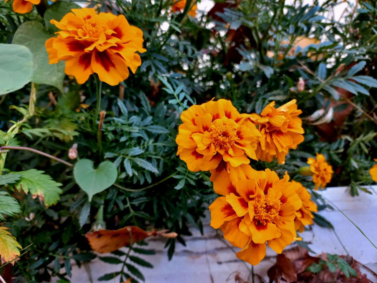 Marigolds, with their vibrant hues of gold, orange, and deep yellow, bloom like tiny suns scattered across the earth. Their petals, soft yet sturdy, create a lush tapestry that dances gently in the breeze. Each flower head is a burst of cheerful color, drawing the eye and lifting the spirit.